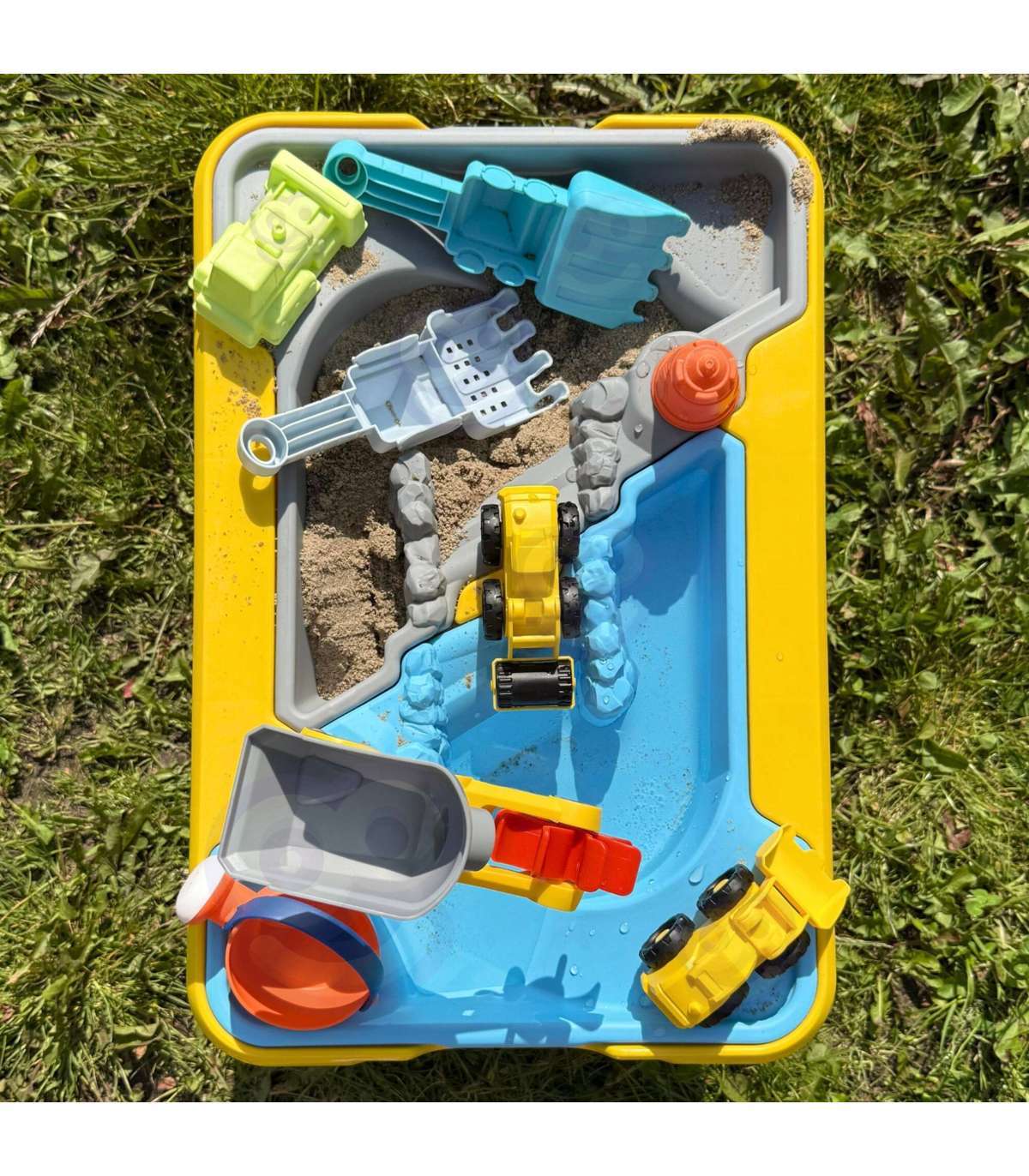WOOPIE 2-ühes veelaud ja liivakast — ehitusplats + 4 mänguautot (12 osa)