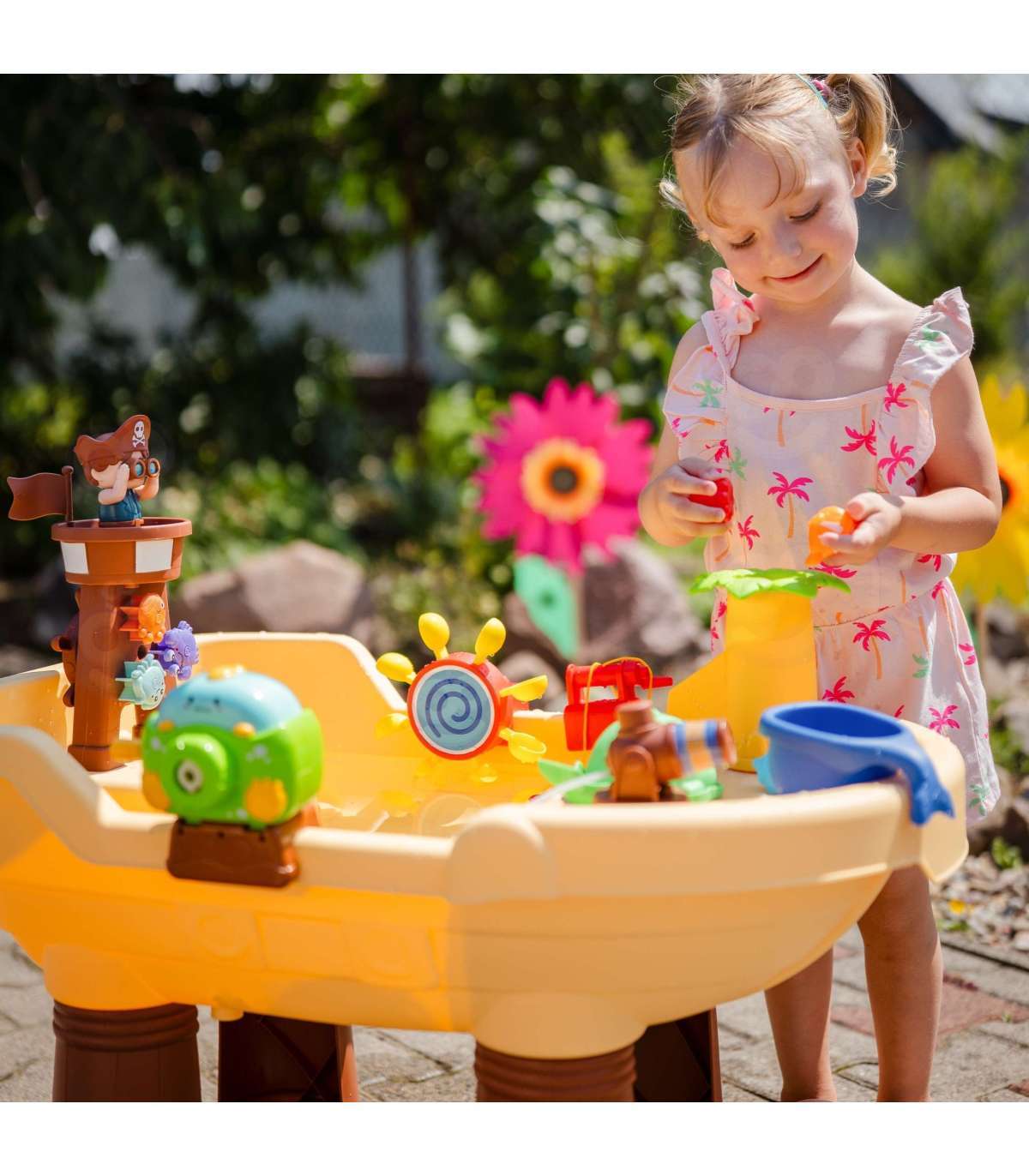 Piraadipaadi veelaud marki Woopie on eriline mänguasi, mis viib lapsed piraadiseiklustesse ja pakub tunde loomingulist mängu õues. Tänu rikkalikule värviliste tarvikute komplektile, liikuvatele elementidele ja piraaditornile saavad väikesed eksperimenteerida veega, mängida mullidega, pöörata vesiratast ning avastada palju mänguvõimalusi. Lihtne, tugev konstruktsioon ja suur suurus muudavad laua mugavaks ja atraktiivseks isegi mitmele lapsele korraga.