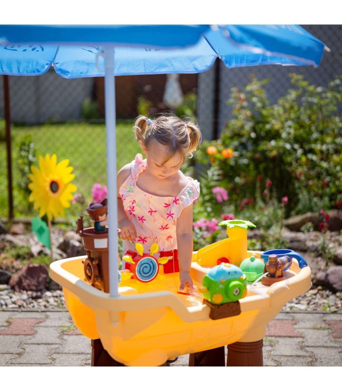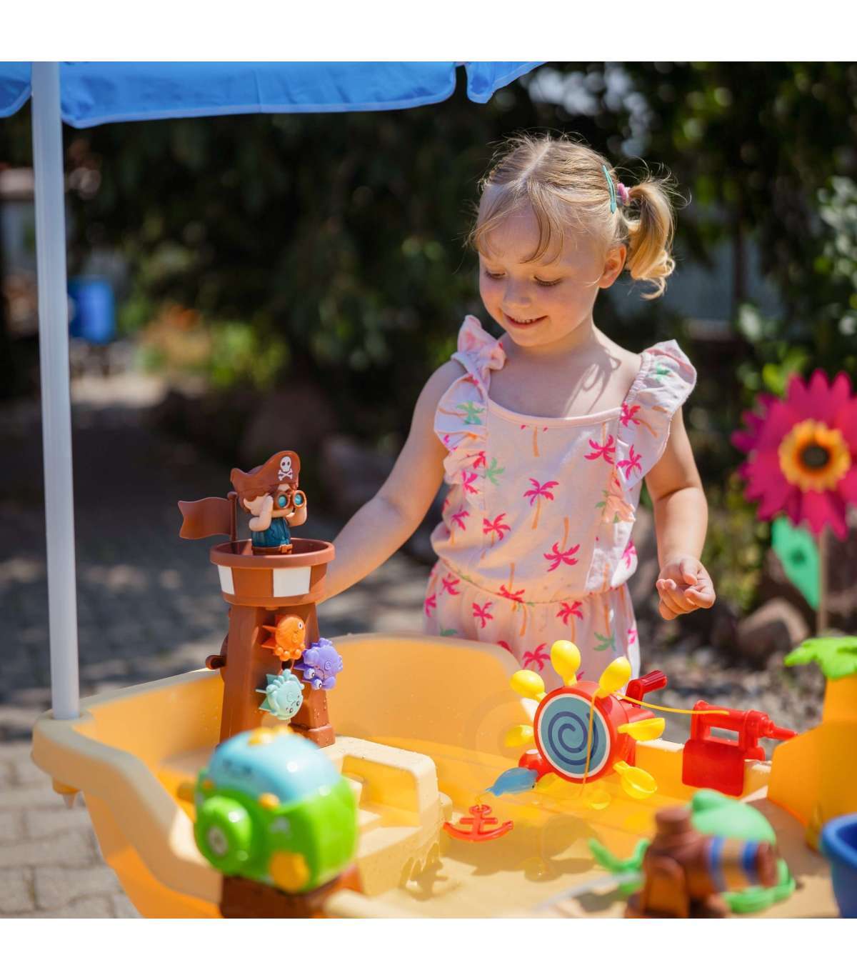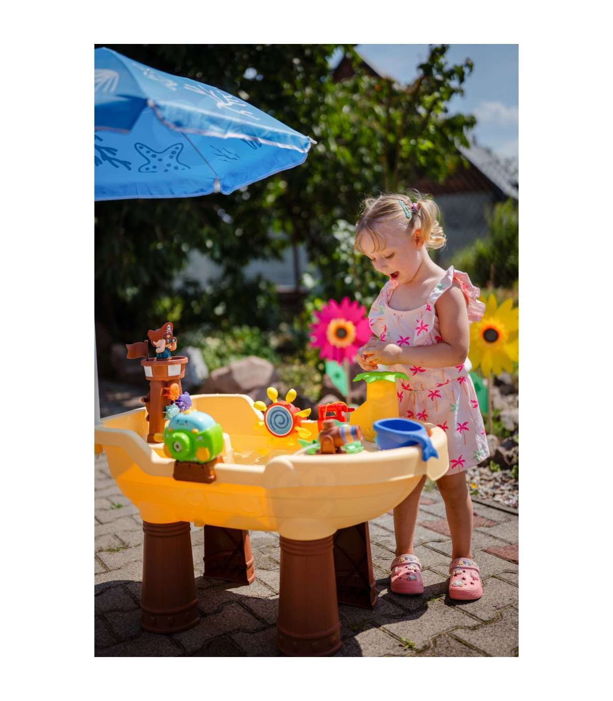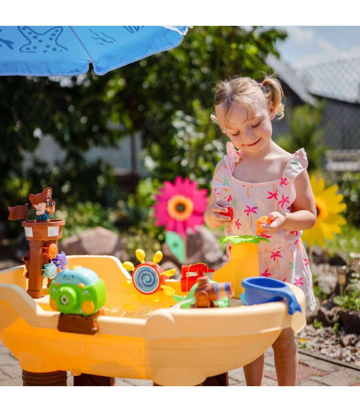 WOOPIE 2-ühes veelaud ja liivakast — piraadilaev XL-varjuga ja seebimullimasinaga