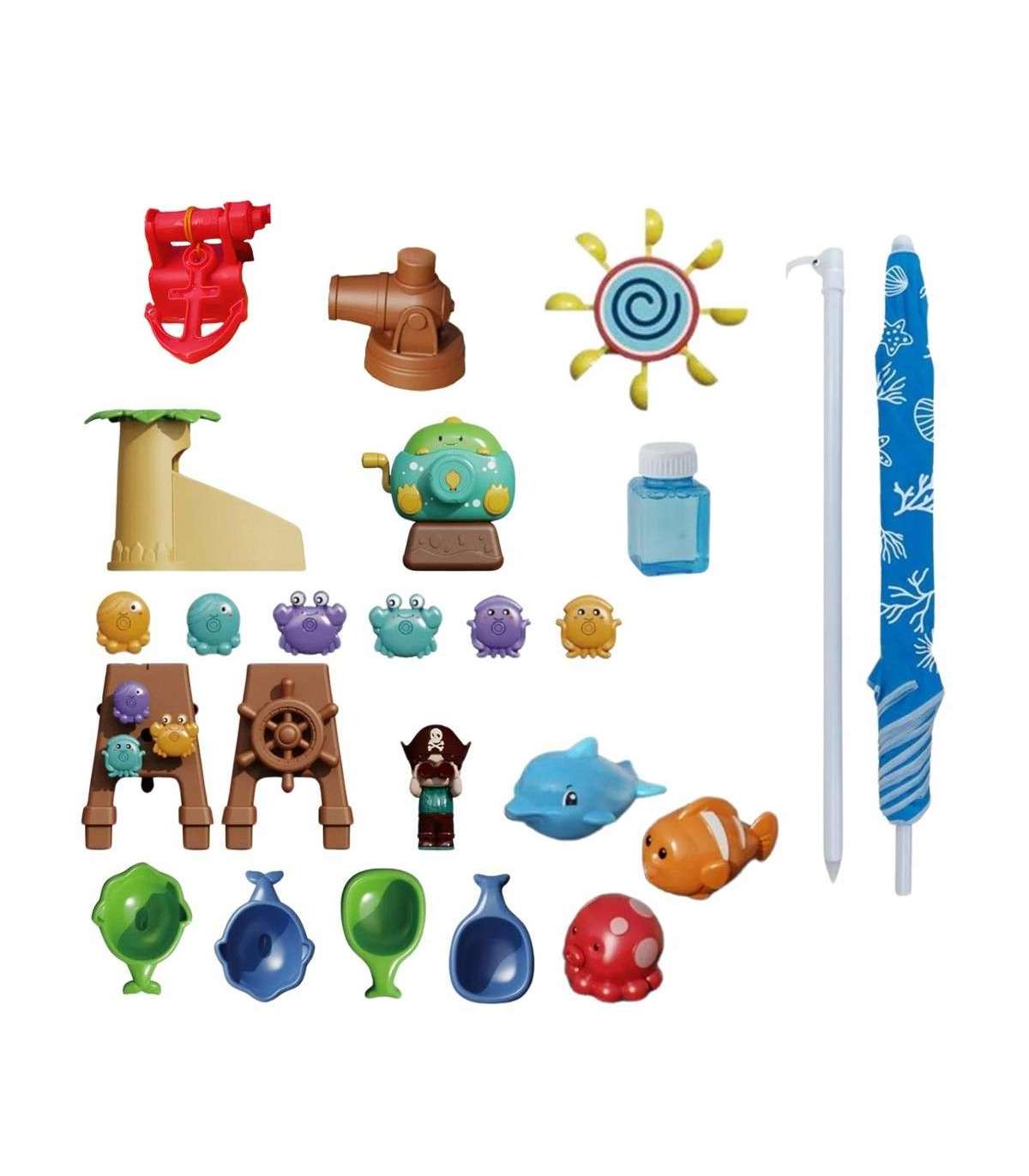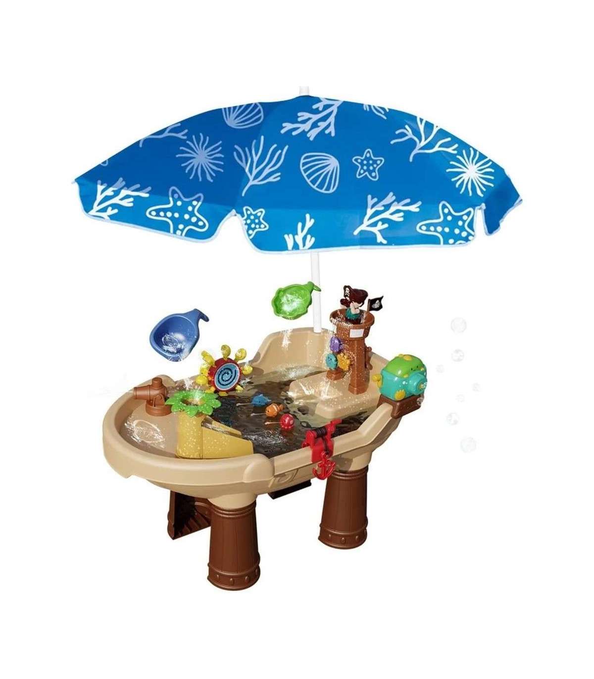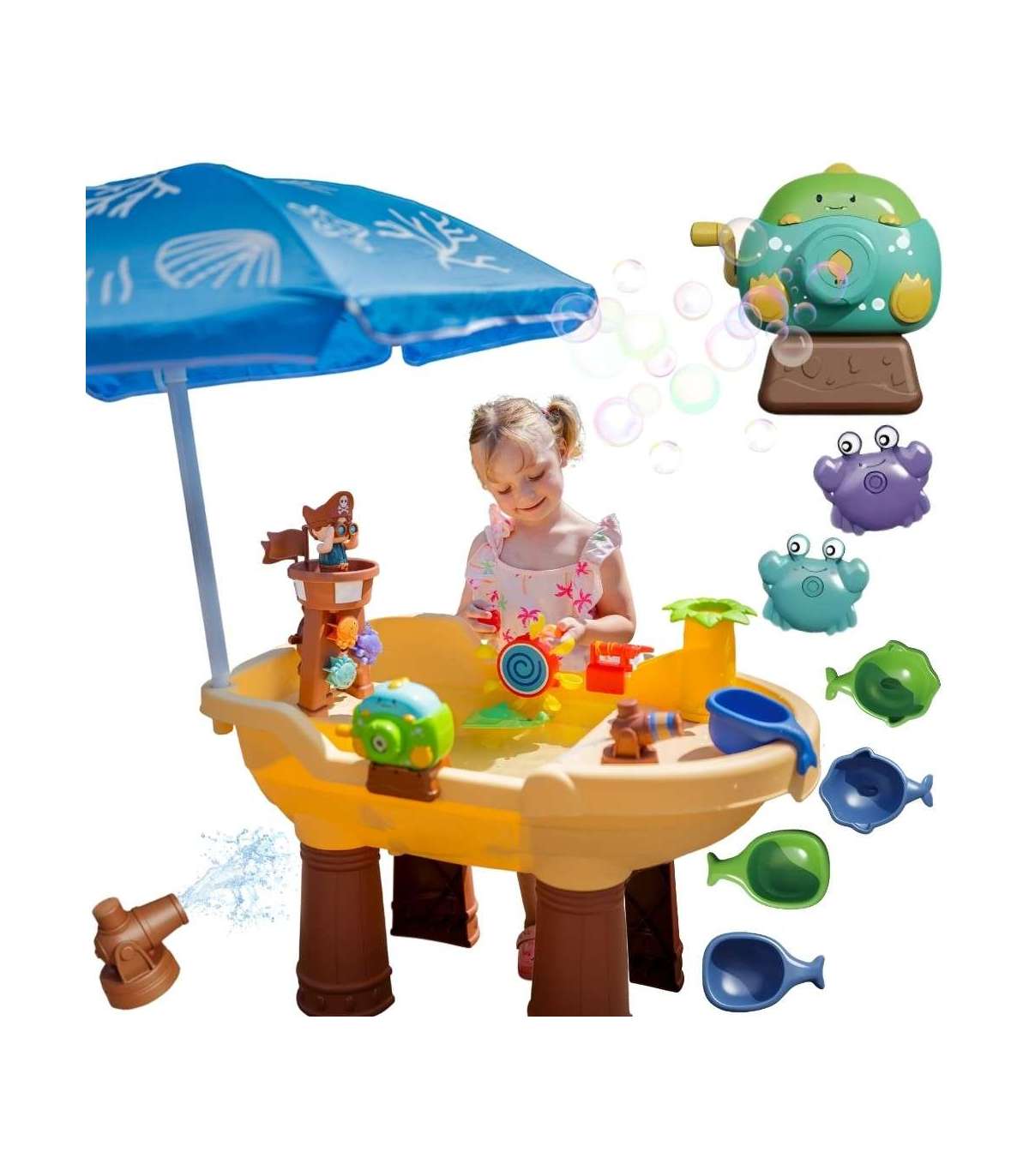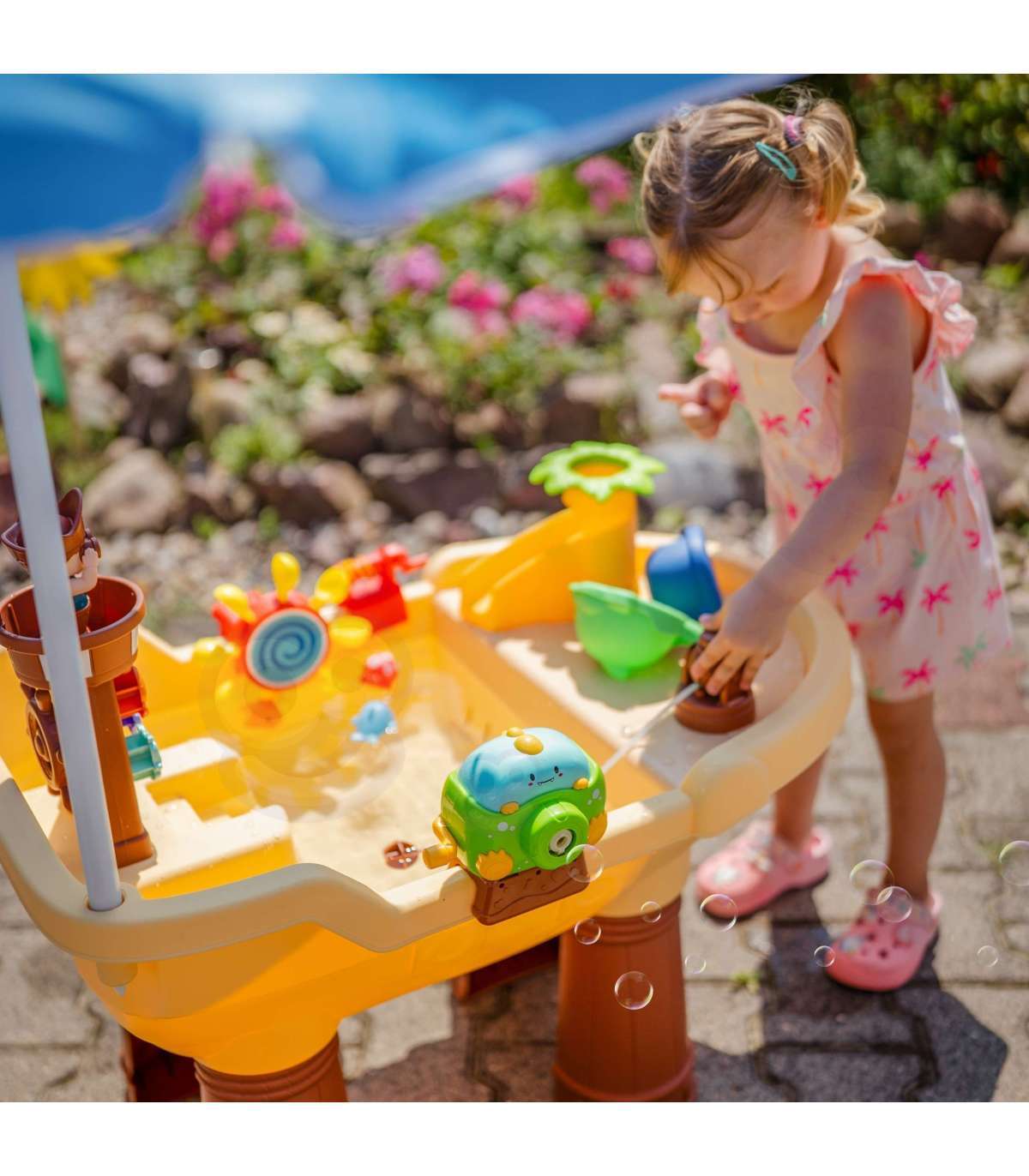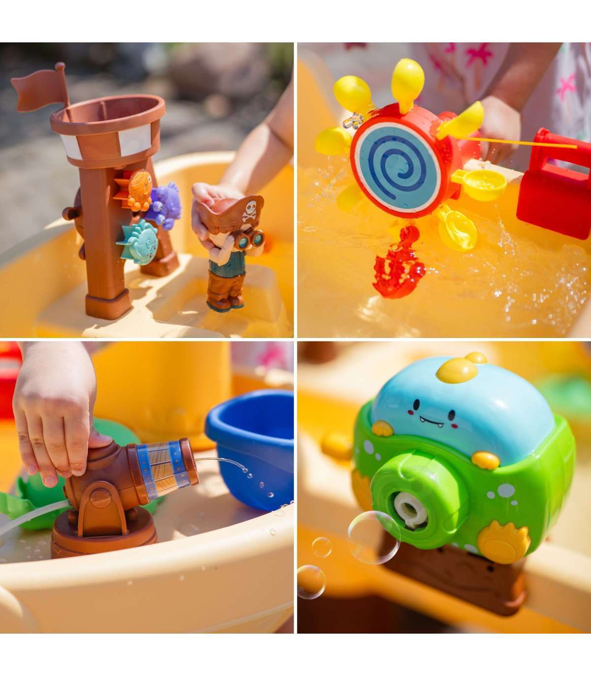 WOOPIE 2-ühes veelaud ja liivakast — piraadilaev XL-varjuga ja seebimullimasinaga