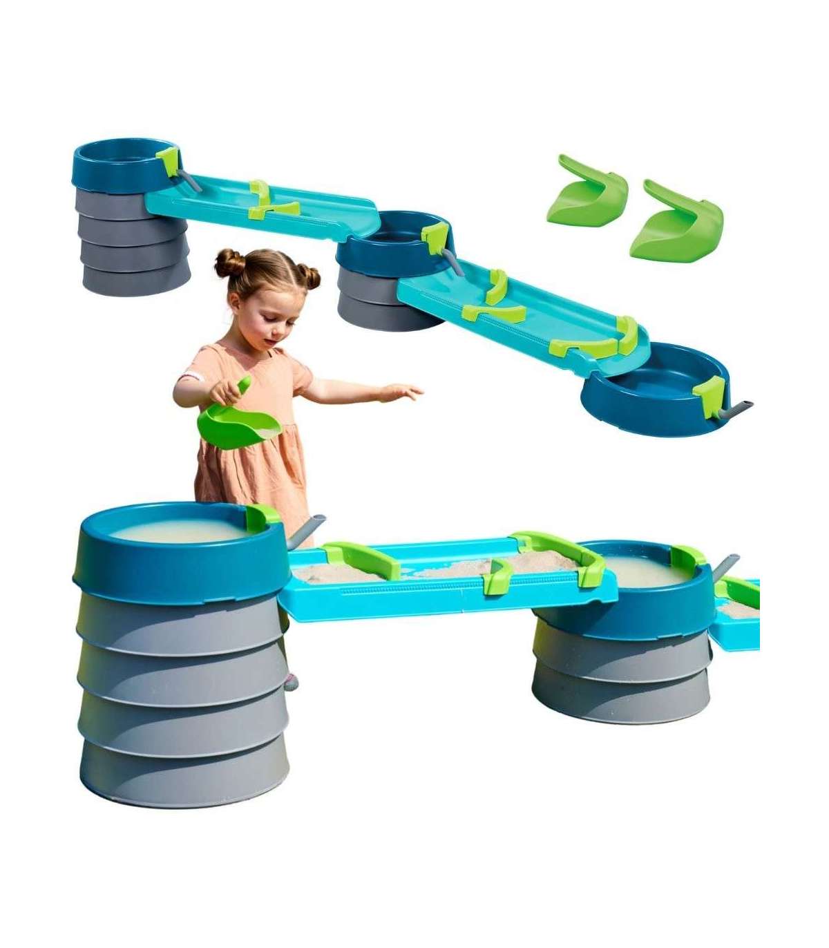 AquaPlay Mudway Flow is the perfect outdoor play set that transforms the garden into a mini water laboratory . Children control the direction and strength of water flow, learning through experimentation and observation . Moving elements, 360° rotating trays , and a modular design make every play experience unique. The set develops creativity, logical thinking, and basic physics through play. It's a combination of active play, learning, and fresh air that truly engages children and adults.