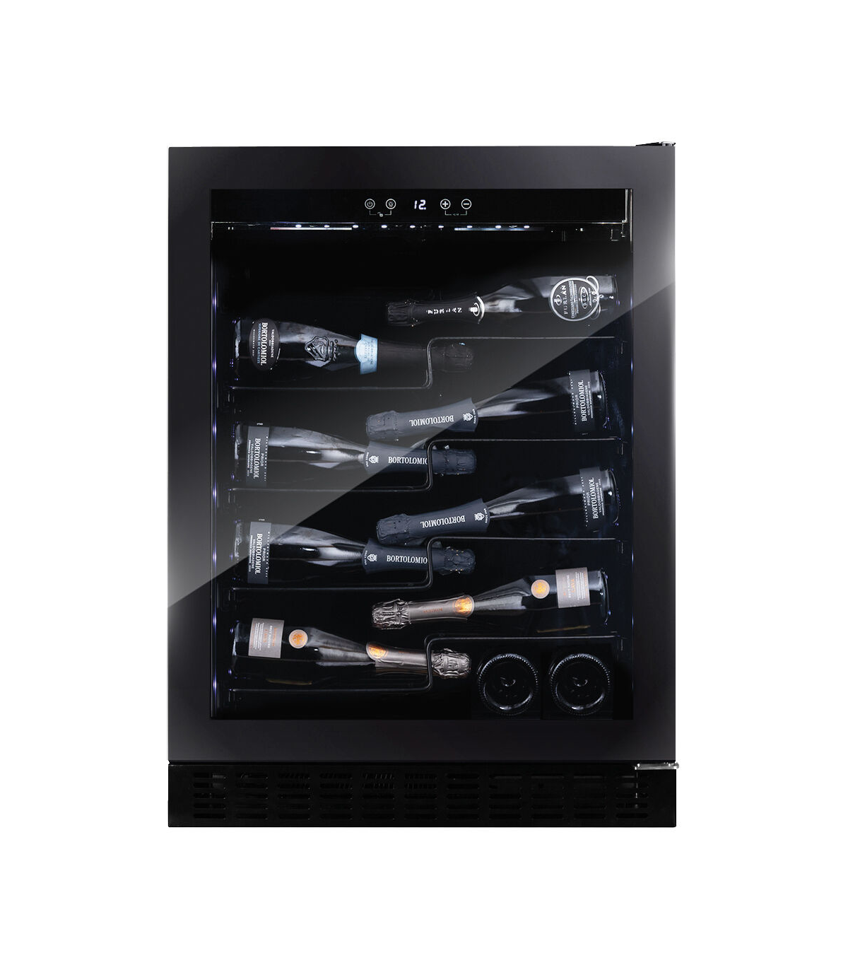 Praktilised ja vastupidavad väljatõmmatavad metallist riiulid. Riiulid mahutavad ka shampanja ja prosecco pudeleid.