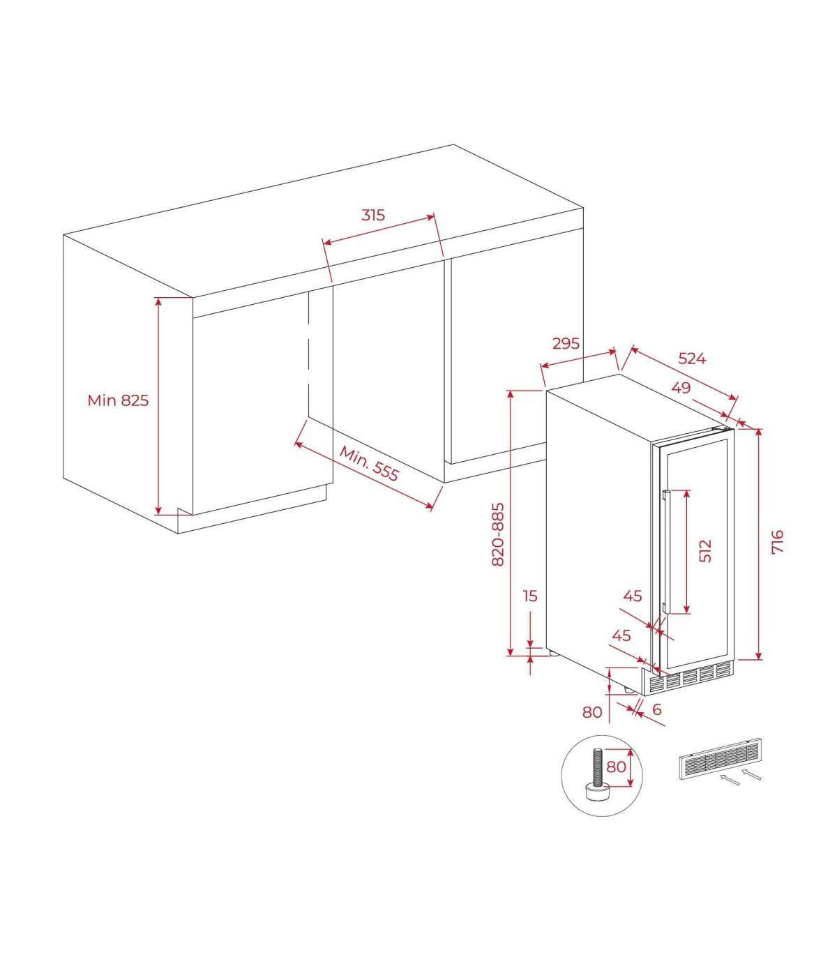 Elegantne ühe temperatuuritsooniga 30 cm laiune Teka veinikülmik.