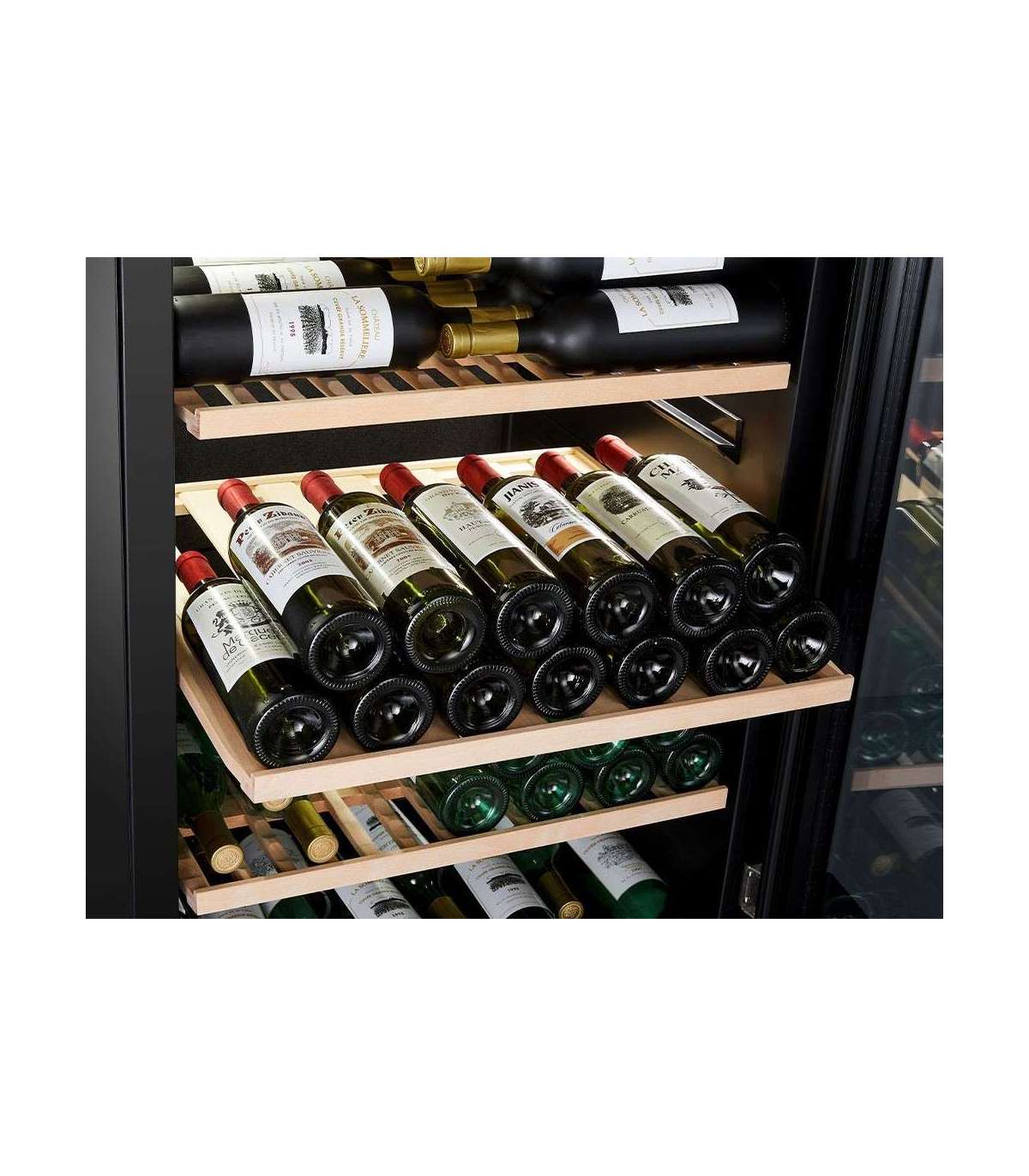 6 eri suurusega puidust riiulit on eemaldatavad ja disainitud eri tüüpi pudelitele - Alsatian, Burgundia, Champenoise jt. 2 riiulit on pudelite ristsuunaliseks ladustamiseks.