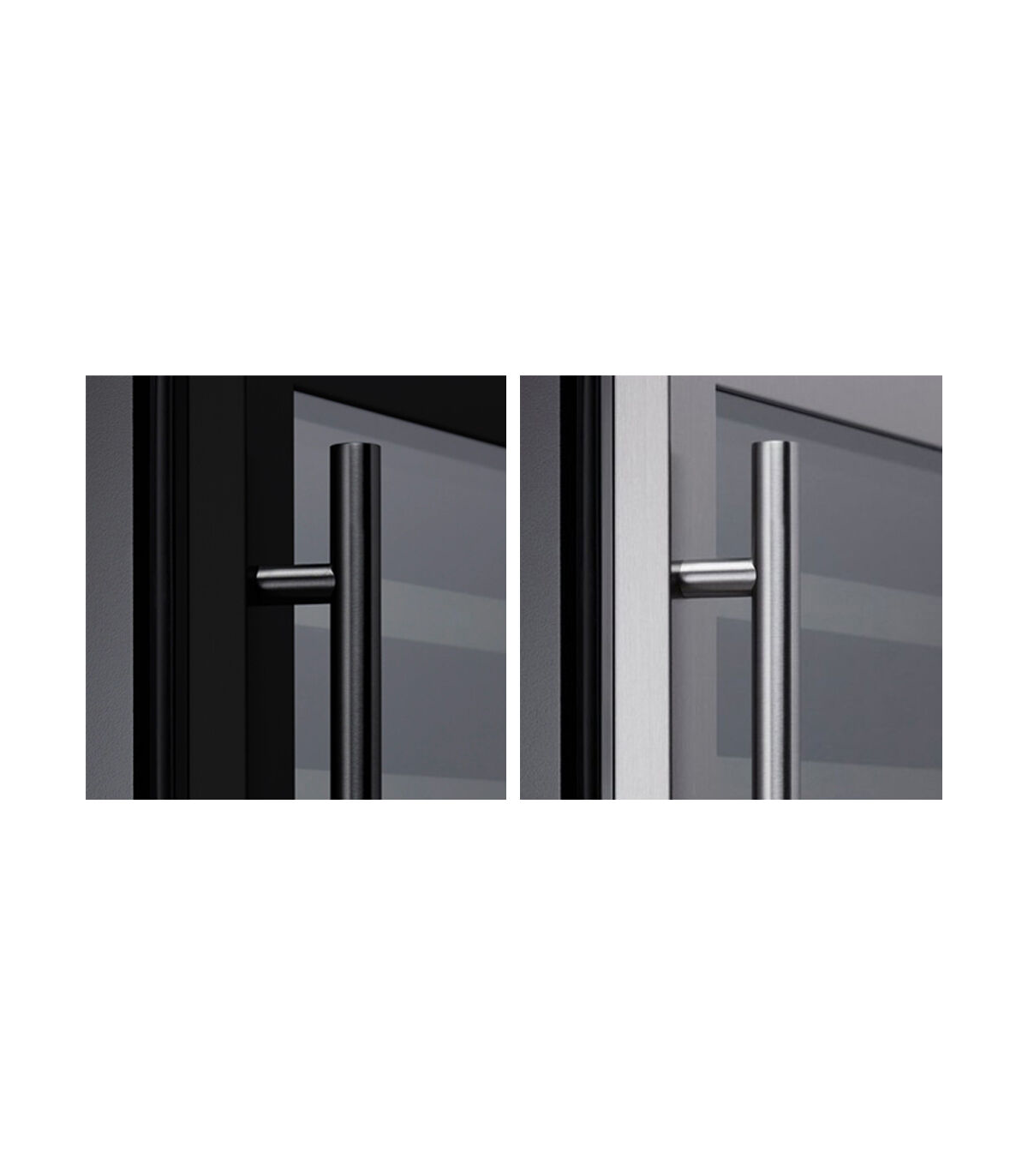 Klaasuksega musta käepidemega integreeritav veinikülmik sobib ideaalselt modernsesse kööki.