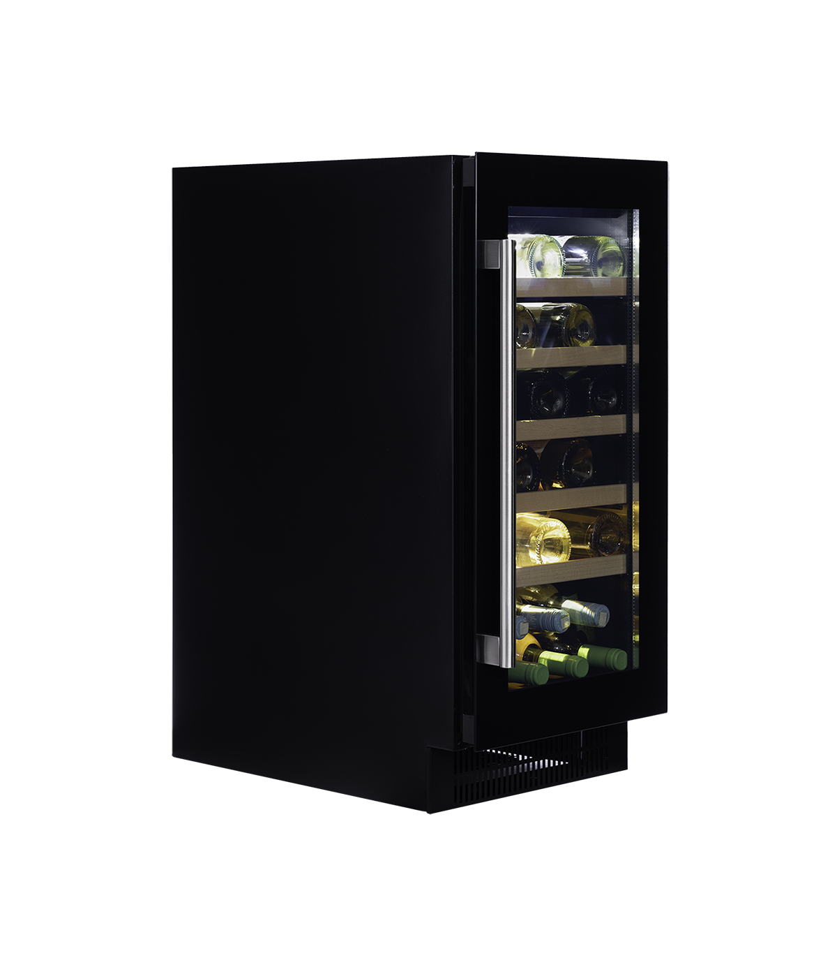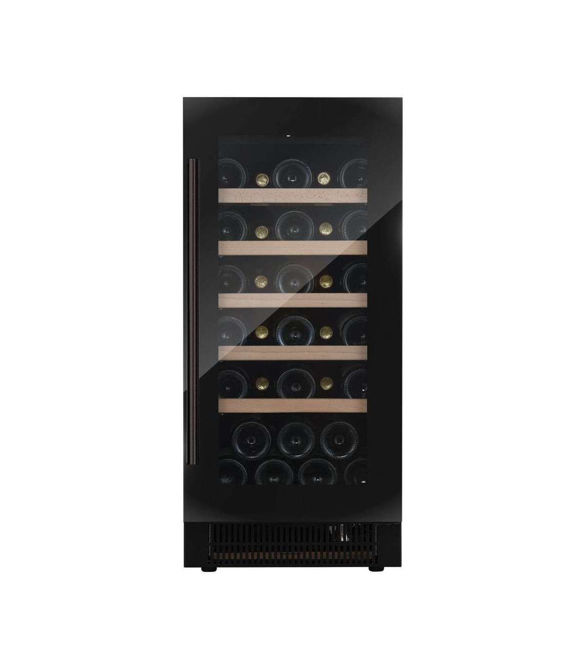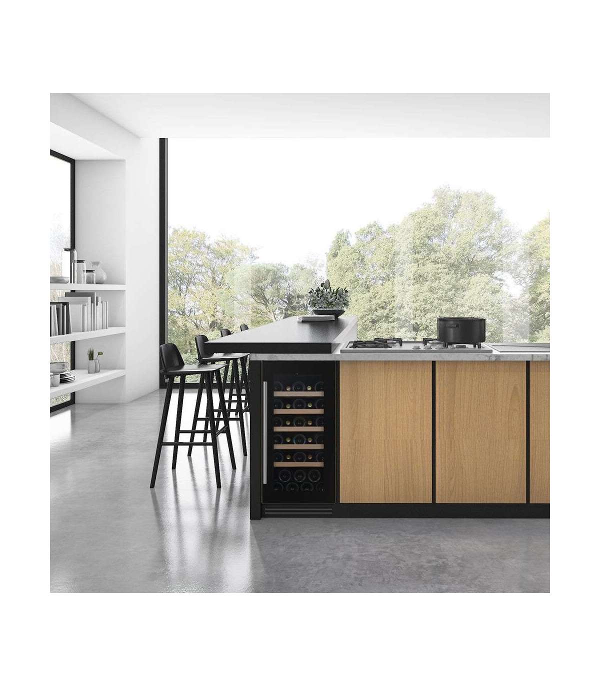 Klaasuksega musta käepidemega veinikülmik sobib ideaalselt modernsesse kööki.