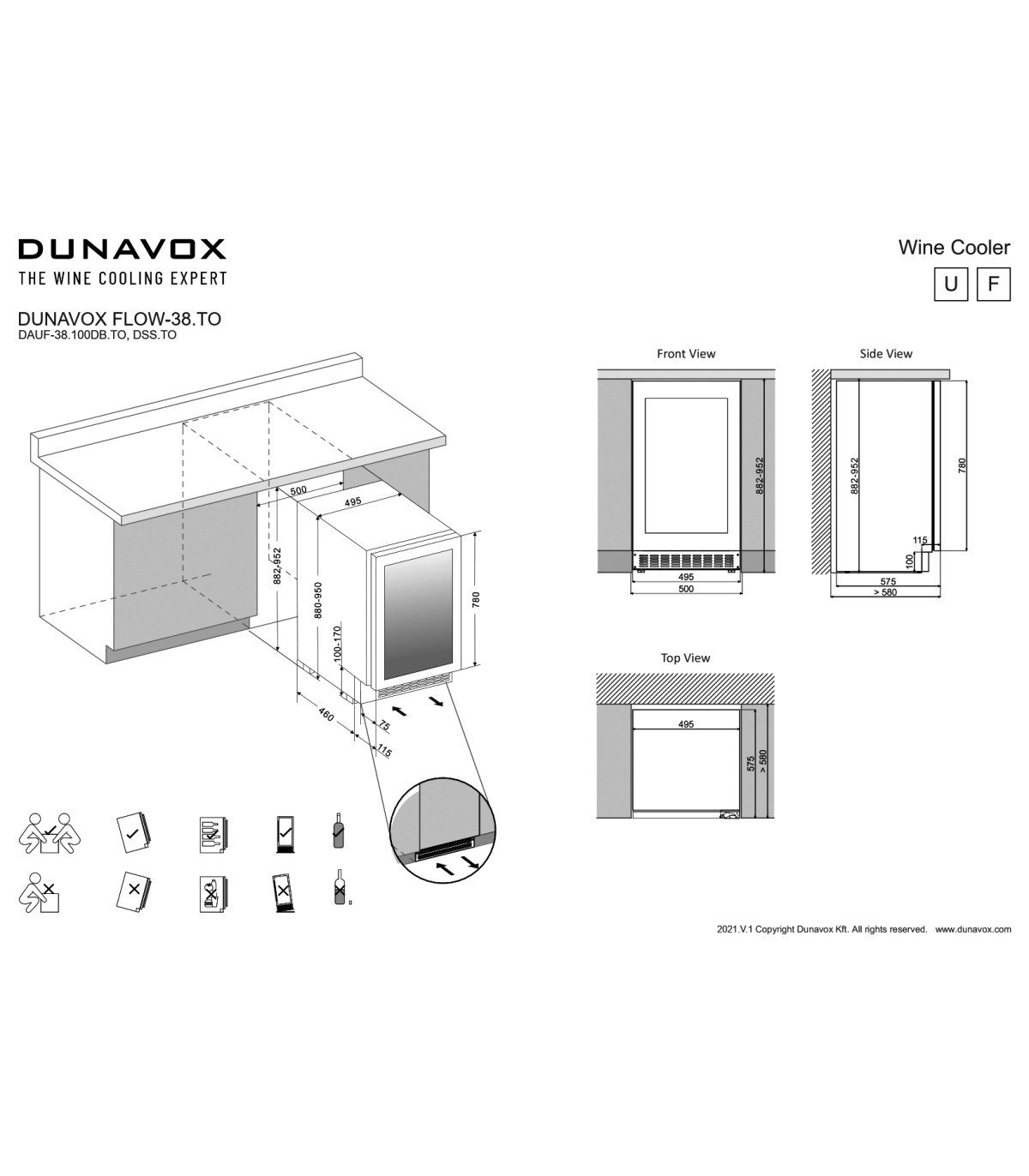 Kahe tsooniline ilma käepidemeta tööpinnaalune veinikülmik Dunavoxilt!