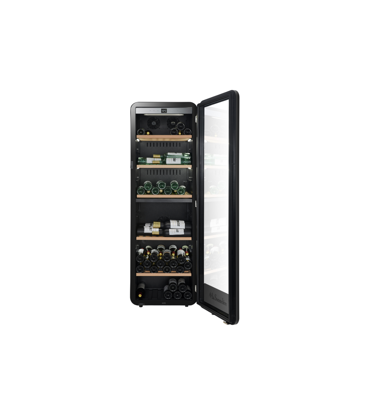 Uus La Sommeliere APOGEE sarja 2 temperatuuritsooniga veinikülmik mahutab 181 Bordeaux-tüüpi pudelit - 88 pudelit ülemisse tsooni ja 93 alla.