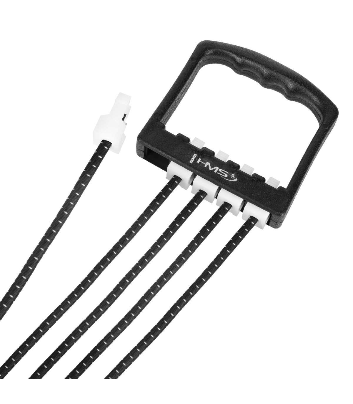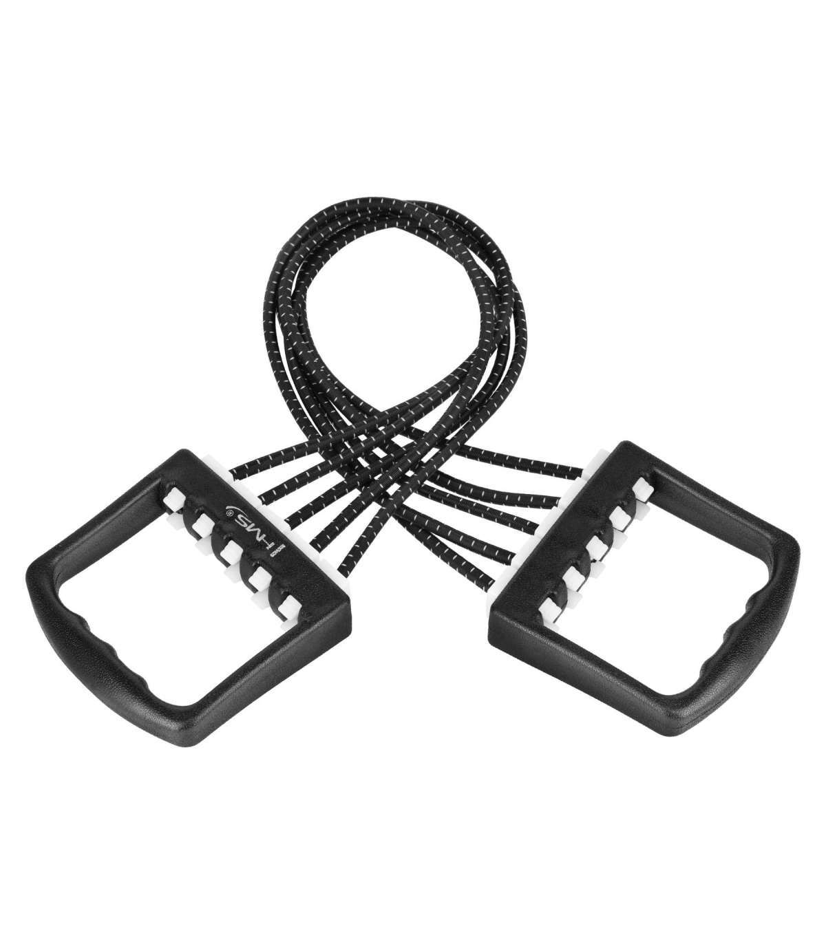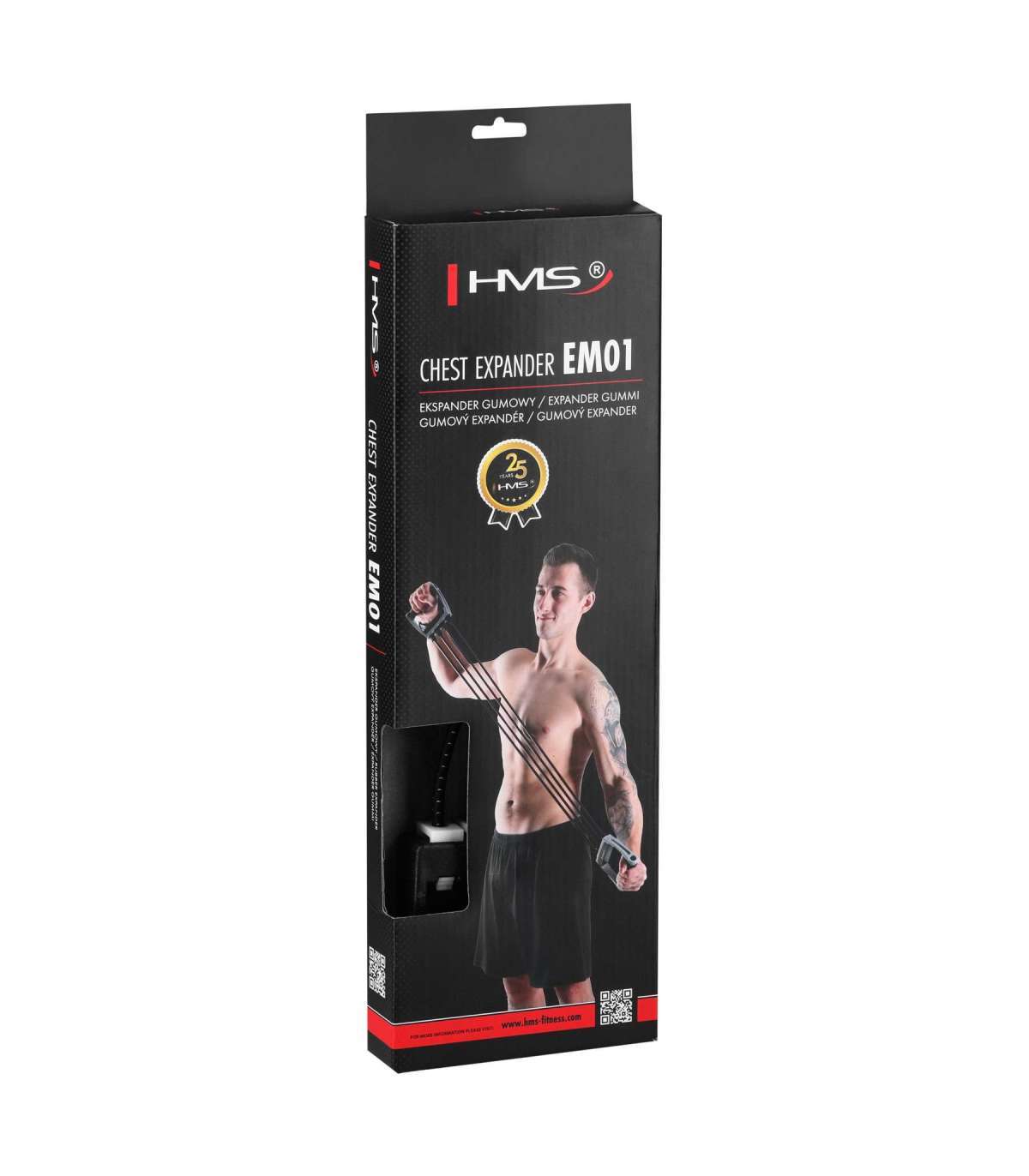 EM01 HMS rubber expander is a fitness accessory intended for exercising the upper body muscle groups. It consists of five rubber resistance bands attached to the two convenient plastic handles. EM01 HMS expander bands are made of rubber with increased tensile strength. Expander resistance force is adjusted by setting an appropriate amount of bands. Our product can also be used for general development and rehabilitation exercises.Specification:Resistance bands: rubberHandles: molded plasticRubbers length: 58 cmLoad range: 1 - 30 kg
