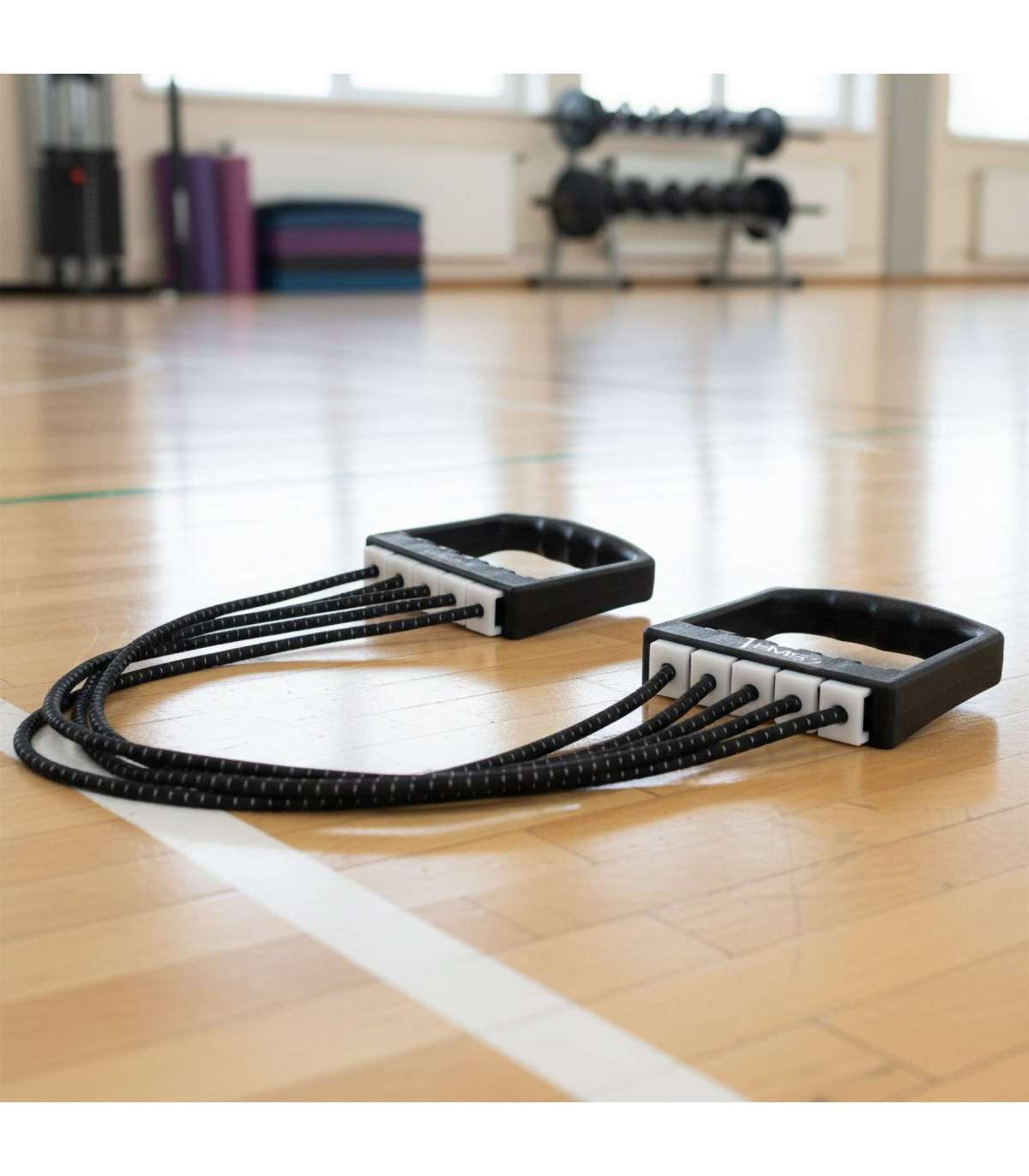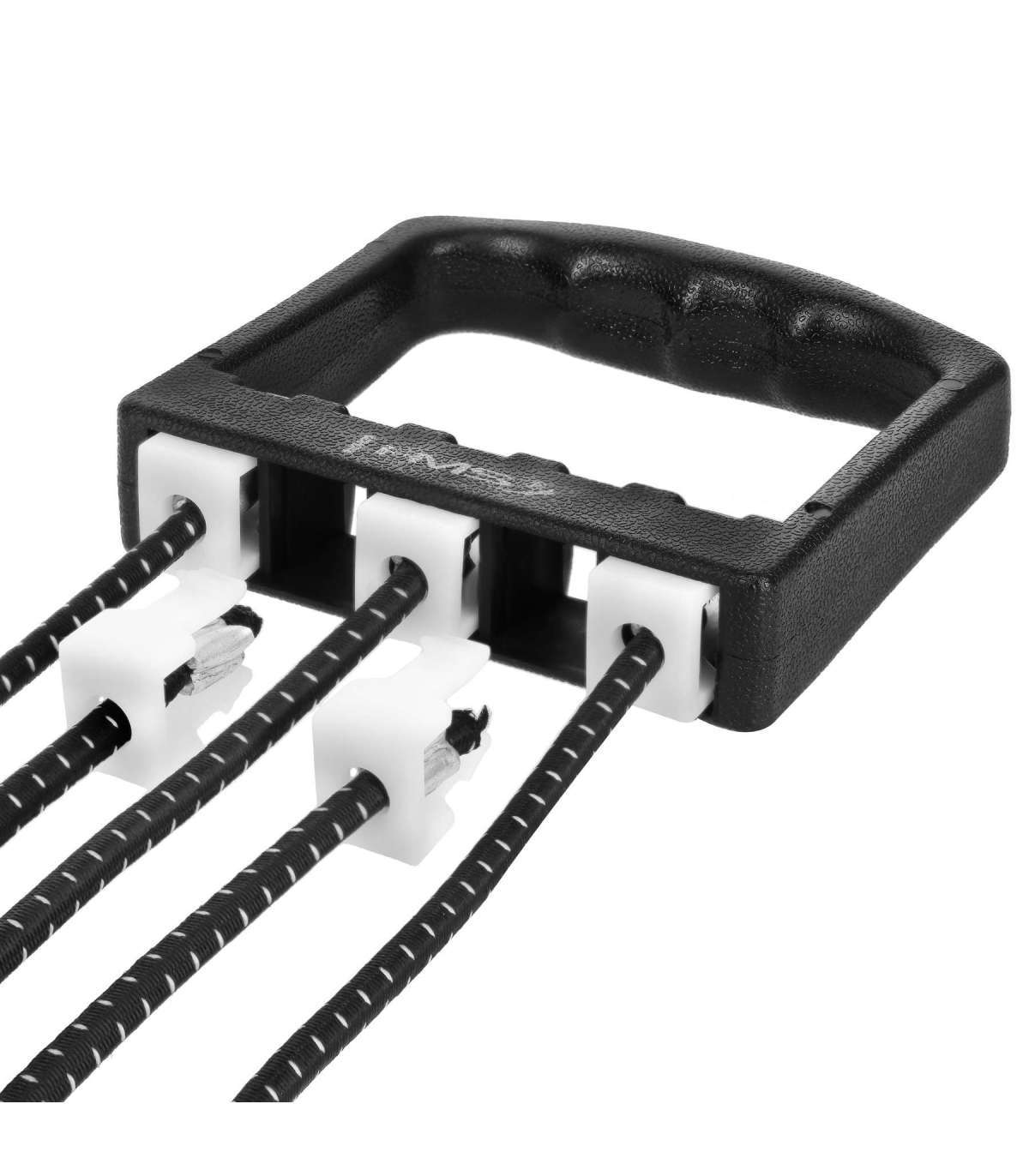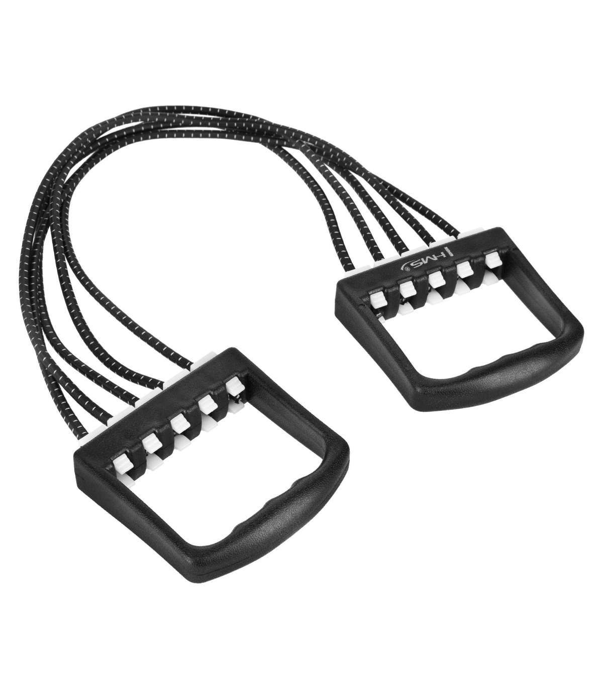 EM01 HMS rubber expander is a fitness accessory intended for exercising the upper body muscle groups. It consists of five rubber resistance bands attached to the two convenient plastic handles. EM01 HMS expander bands are made of rubber with increased tensile strength. Expander resistance force is adjusted by setting an appropriate amount of bands. Our product can also be used for general development and rehabilitation exercises.Specification:Resistance bands: rubberHandles: molded plasticRubbers length: 58 cmLoad range: 1 - 30 kg
