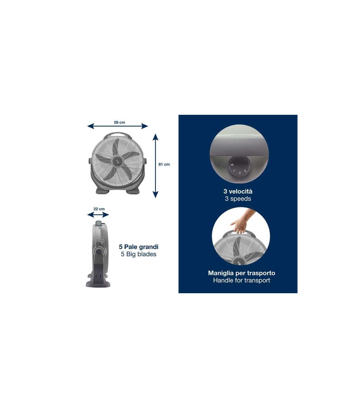 Moodne disain annab sellele ventilaatorile suurepärase stabiilsuse, samas kui 5-kraadised labad ja õhuvoolu vertikaalne suund võimaldavad kõrget ja ühtlast õhuringlust.