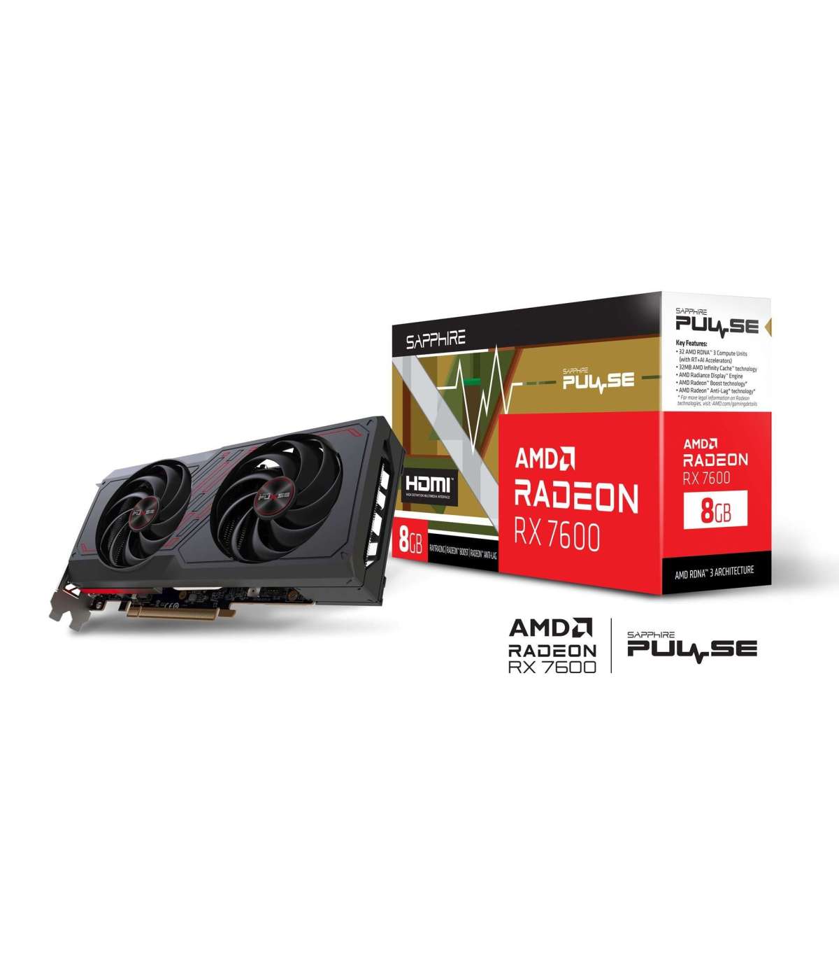 SAPPHIRE PULSE AMD Radeon RX 7600 GAMING OC 8G Graphics Card
