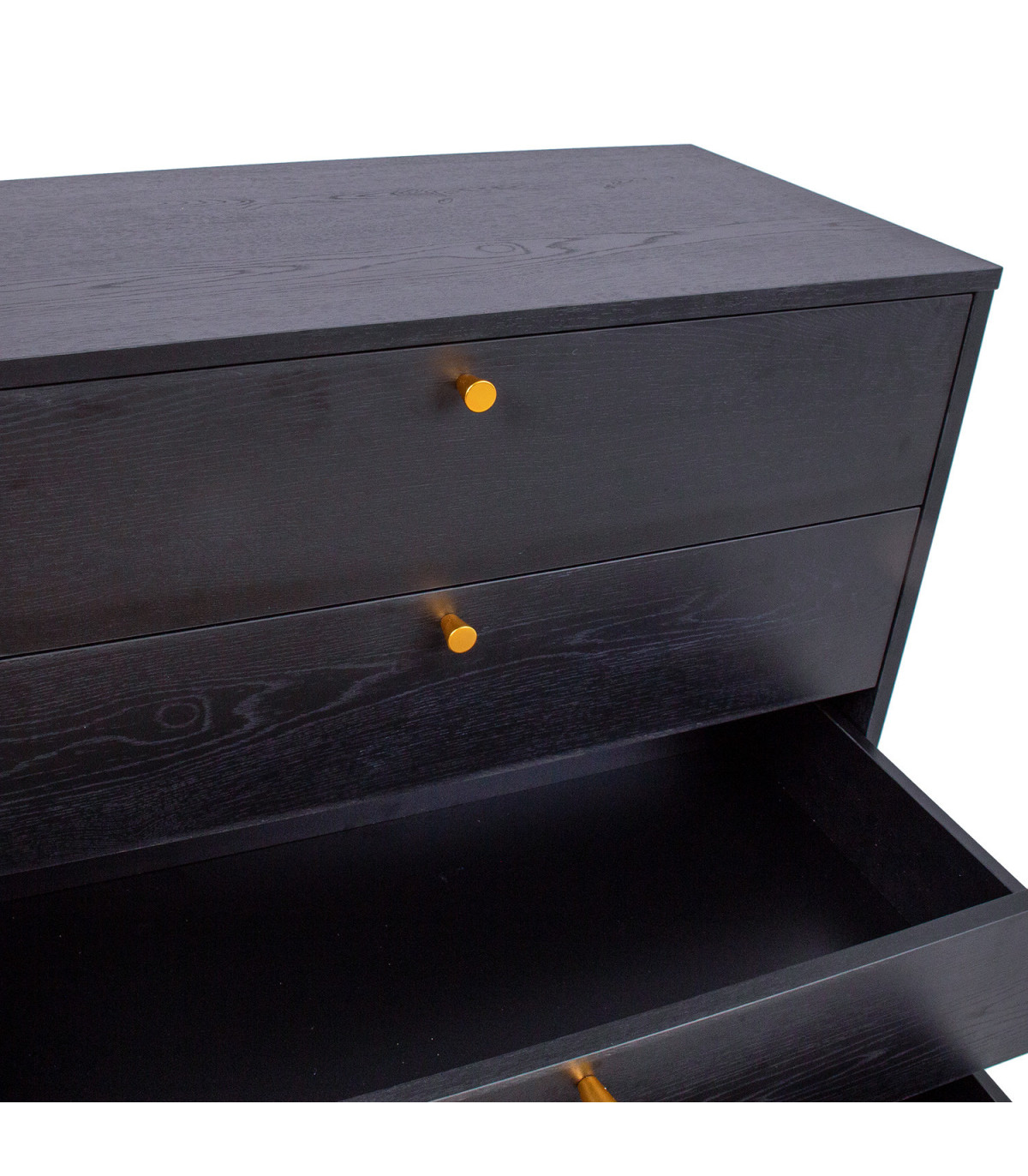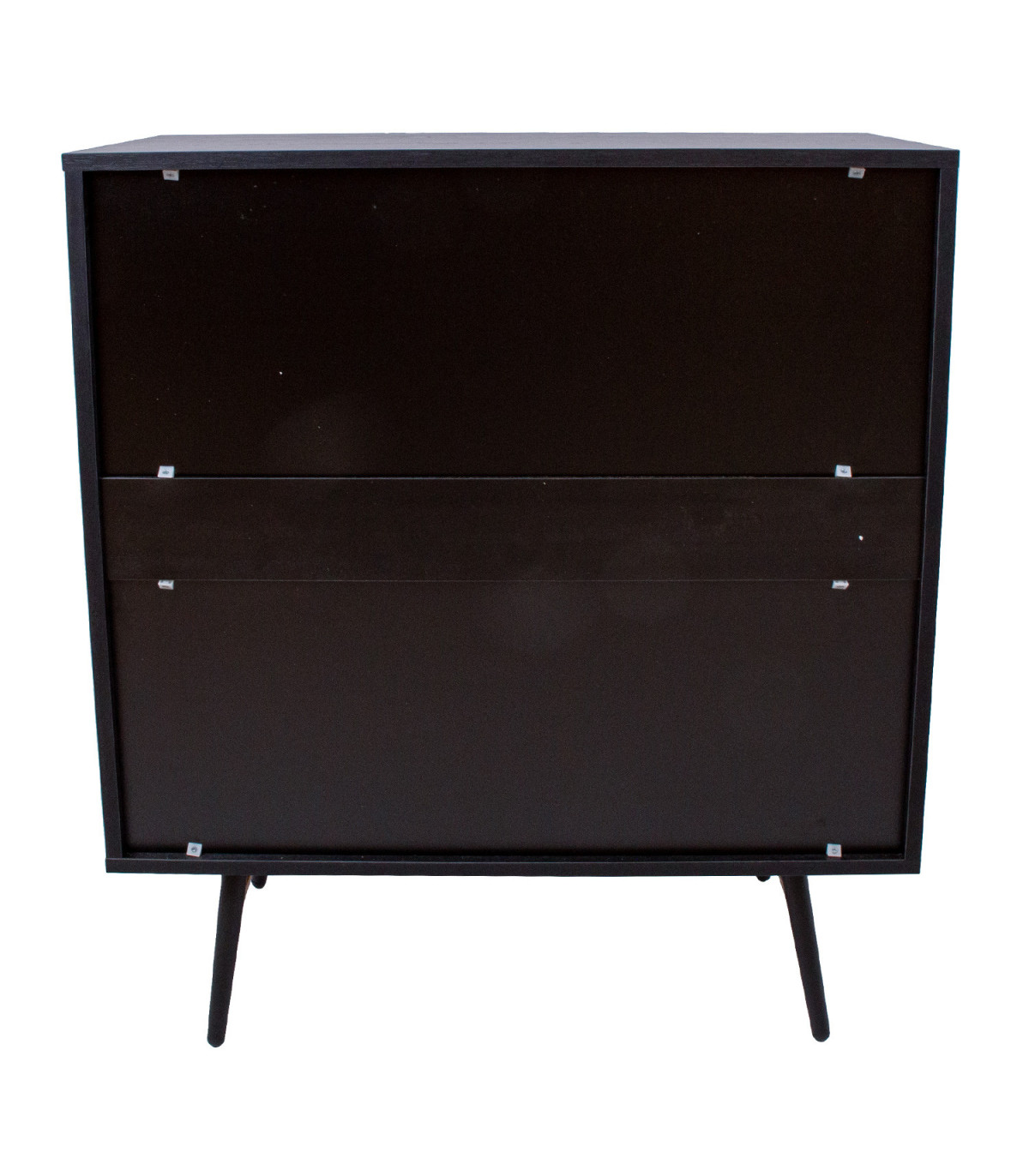 Kummut LUXEMBOURG 4-sahtliga 80x40xH90cm, must. Kummut on valmistatud puidudekooriga melamiinkattega mööbliplaadist. Jalgu seovad vasevärvi metallist detailid, mis annavad kummutile stiilse välimuse ja samas tagavad aluskonstruktsiooni tugevuse. Kummutil on neli sahtlit. Sahtlisiinid on vaikselt sulguvad. Sahtlite ja uste nupud on vasevärvi alumiiniumist. Jalgade kõrgus on 20cm.