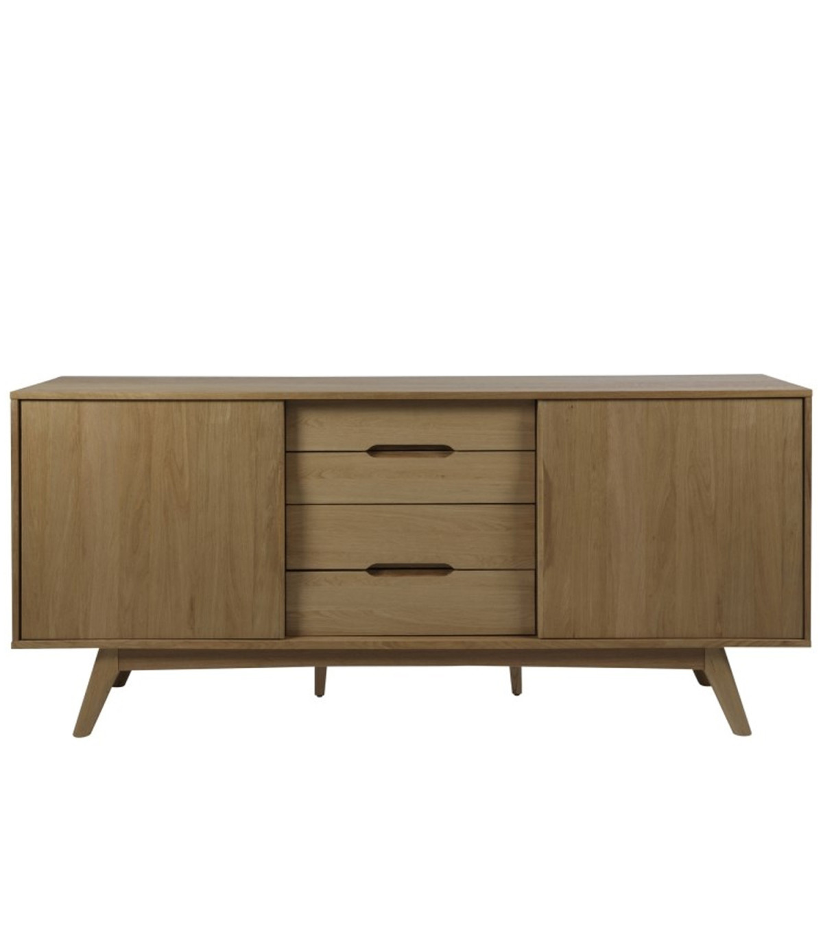 Retro-hõnguline kummut, mis mõjub samal ajal kaasaegselt. Nurga all olevad jalad annavad kummutile iseloomuliku nostalgilise ilme. 4 mahukat sahtlit ja 4 riiulit annavad palju lisaruumi. Integreeritud käepidemed ja õlitatud tammepuit muudavad kummuti kaasaegseks. Materjal: tammespoon; alus: täispuit, viimistlus: õlitatud. Mõõdud on 180x44xH84cm.