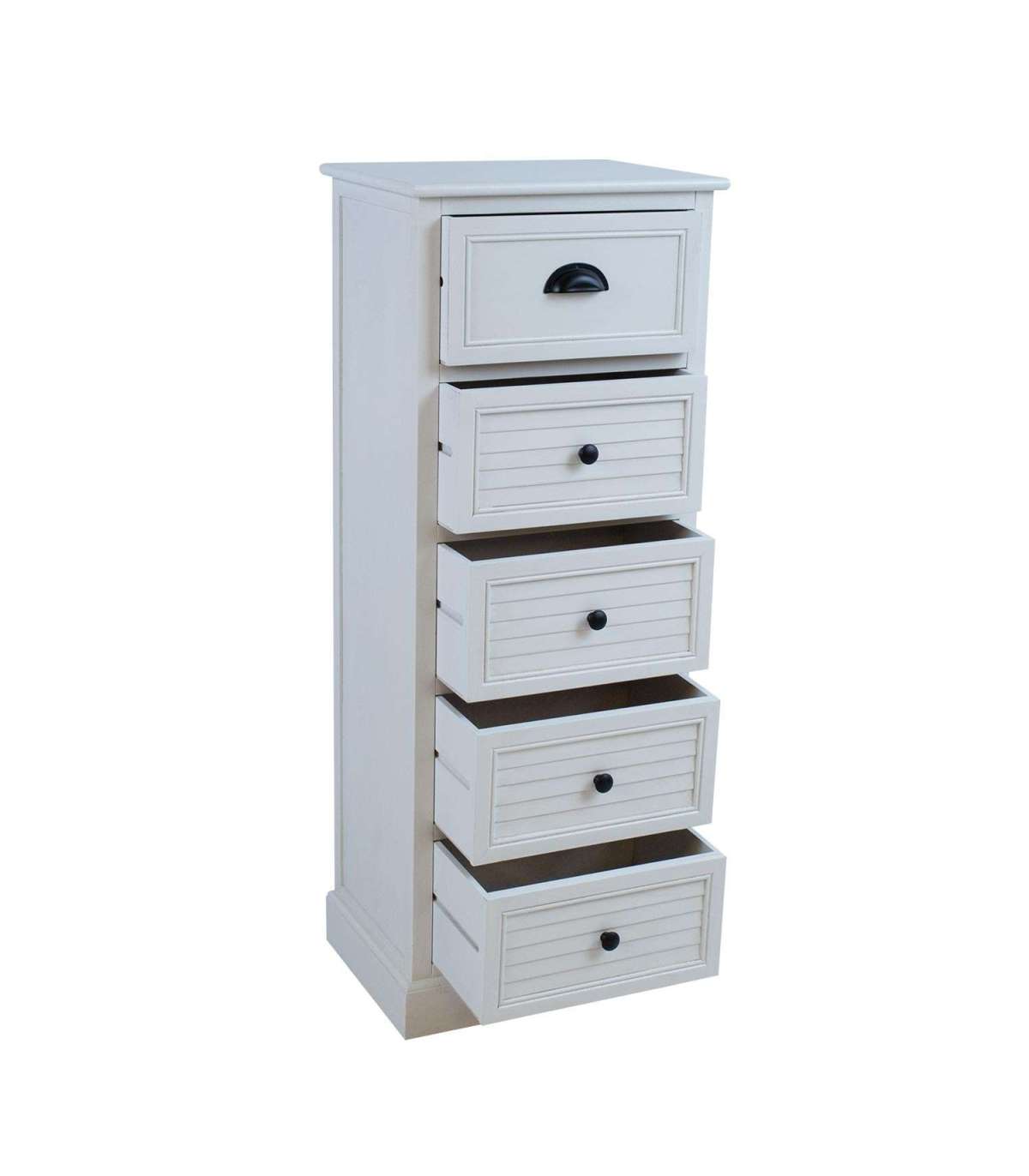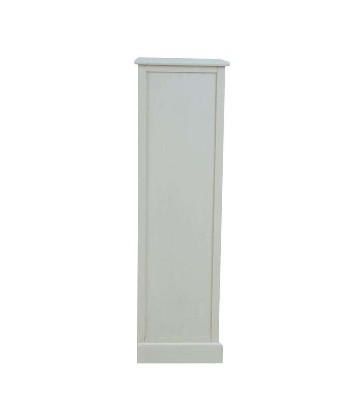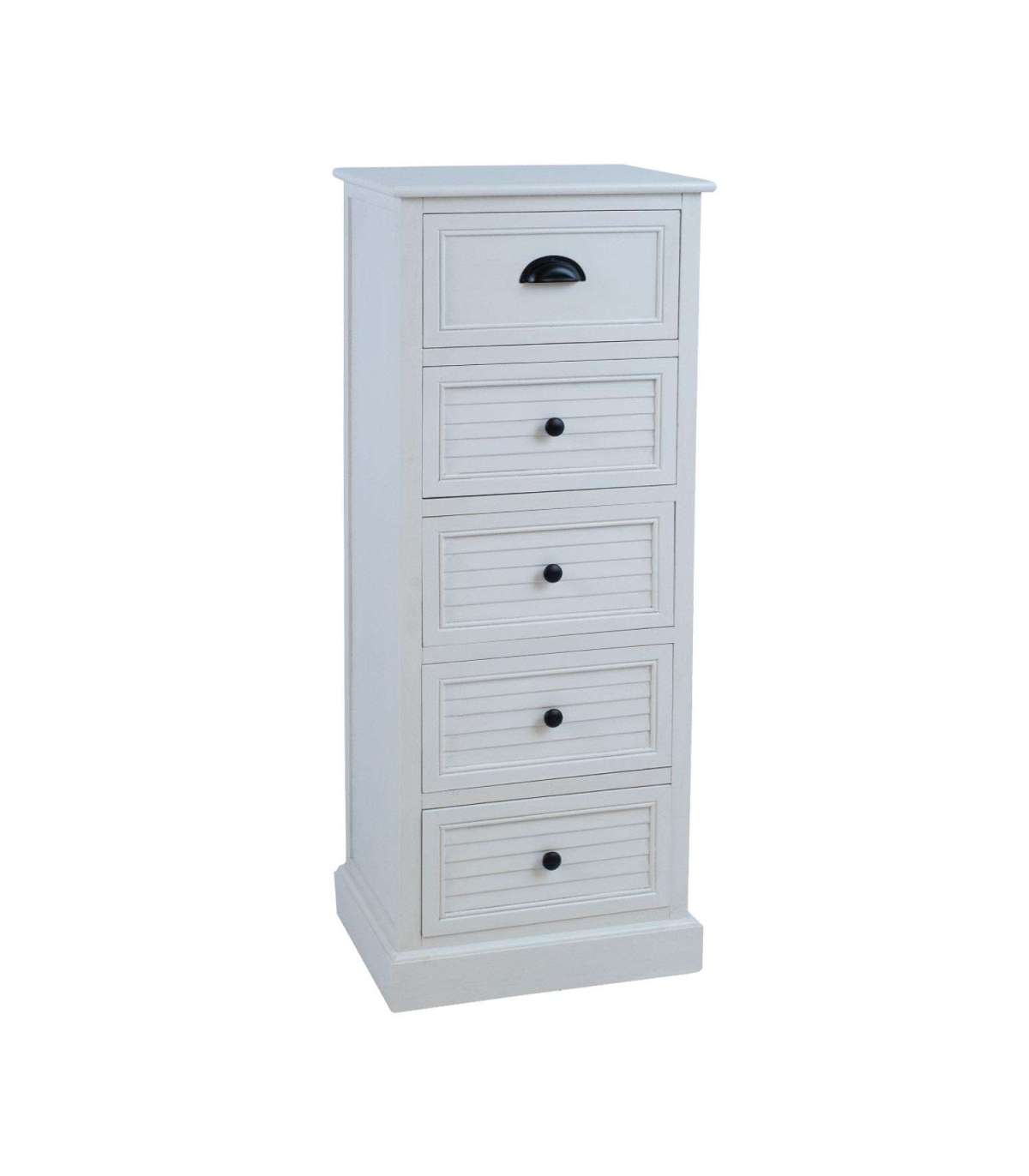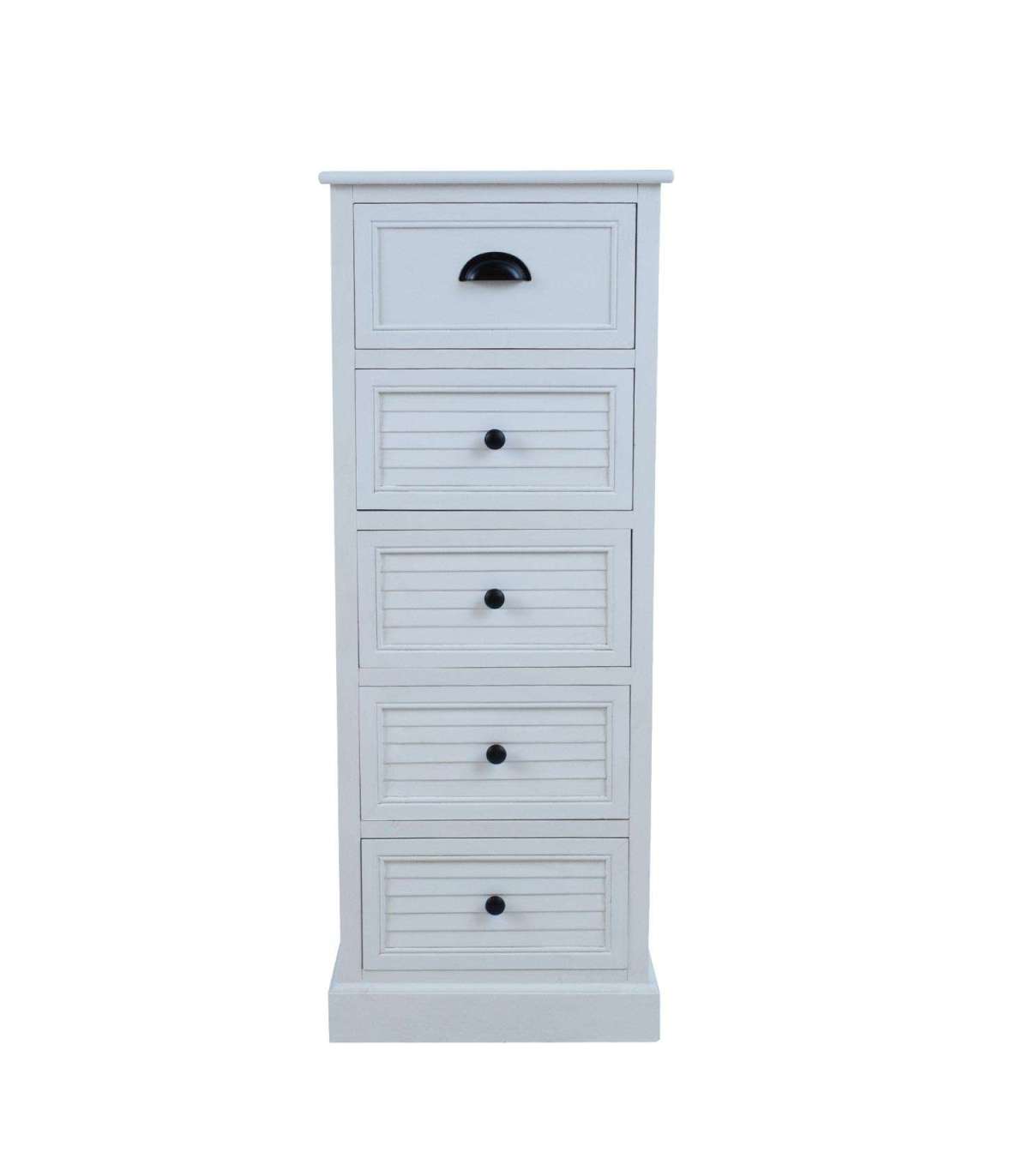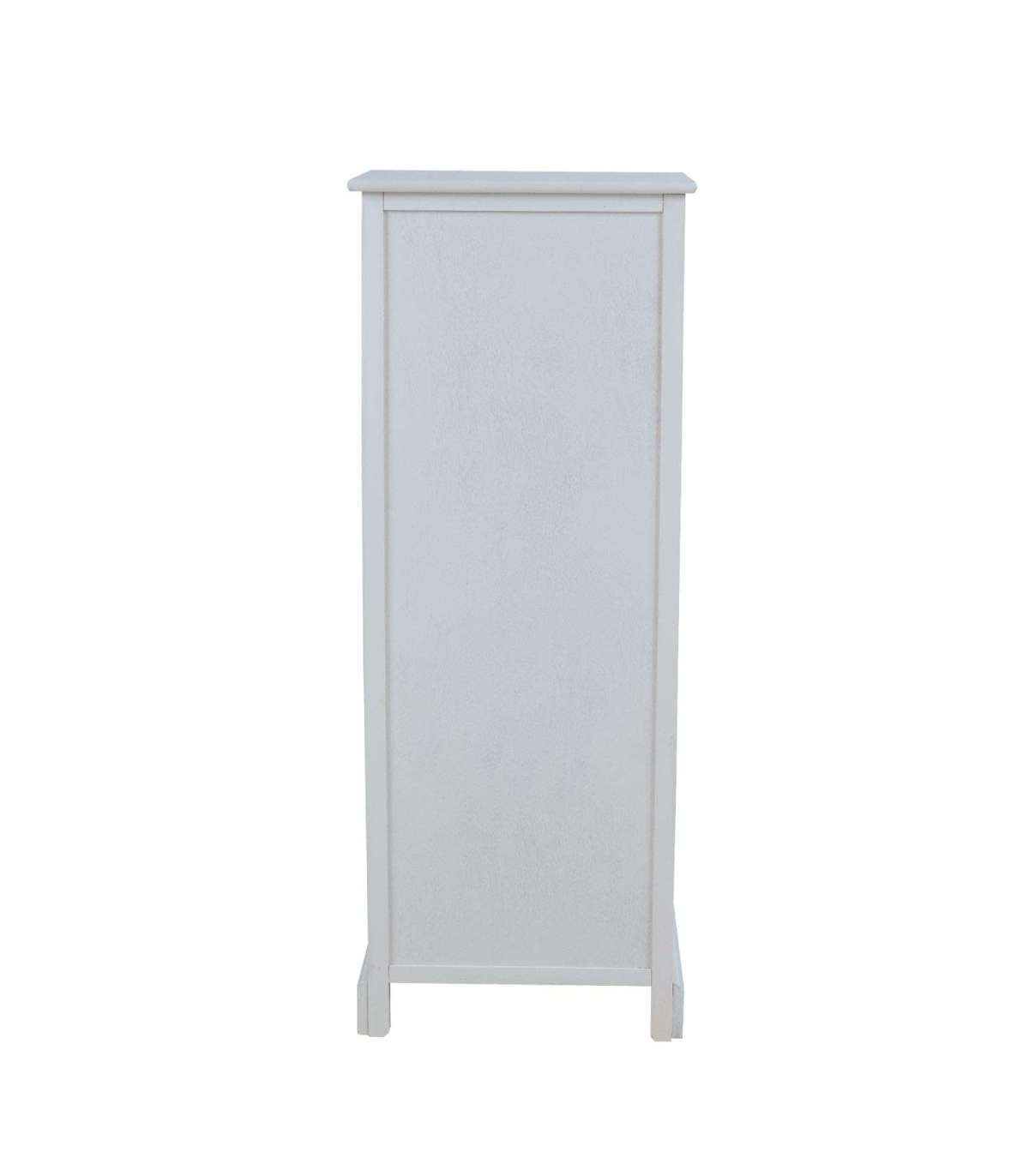 Kummuti põhikonstruktsioon ja sokkel on valmistatud männipuidust. Pealmine lauaplaat, sahtlid ja paneelid on värvitud MDF. Kapp on viimistletud valge värviga. Metallist käepidemetega sahtlid on ilma siinideta.