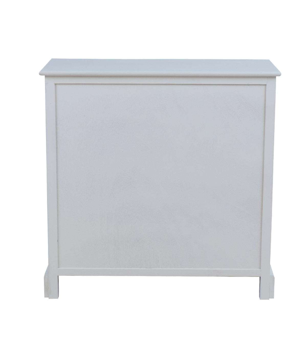 Kummuti põhikonstruktsioon ja sokkel on valmistatud männipuidust. Pealmine lauaplaat, sahtlid ja ukse paneelid on värvitud MDF. Kummut on viimistletud valge värviga. Metallist käepidemetega sahtlid on ilma siinideta.