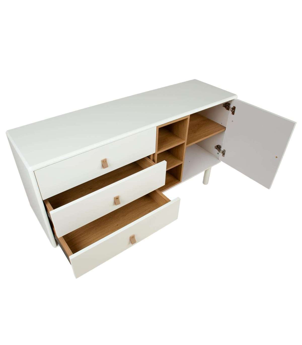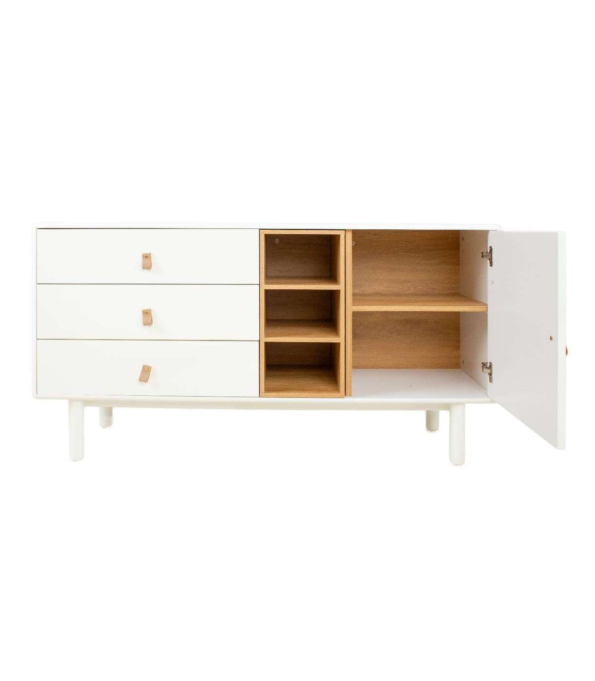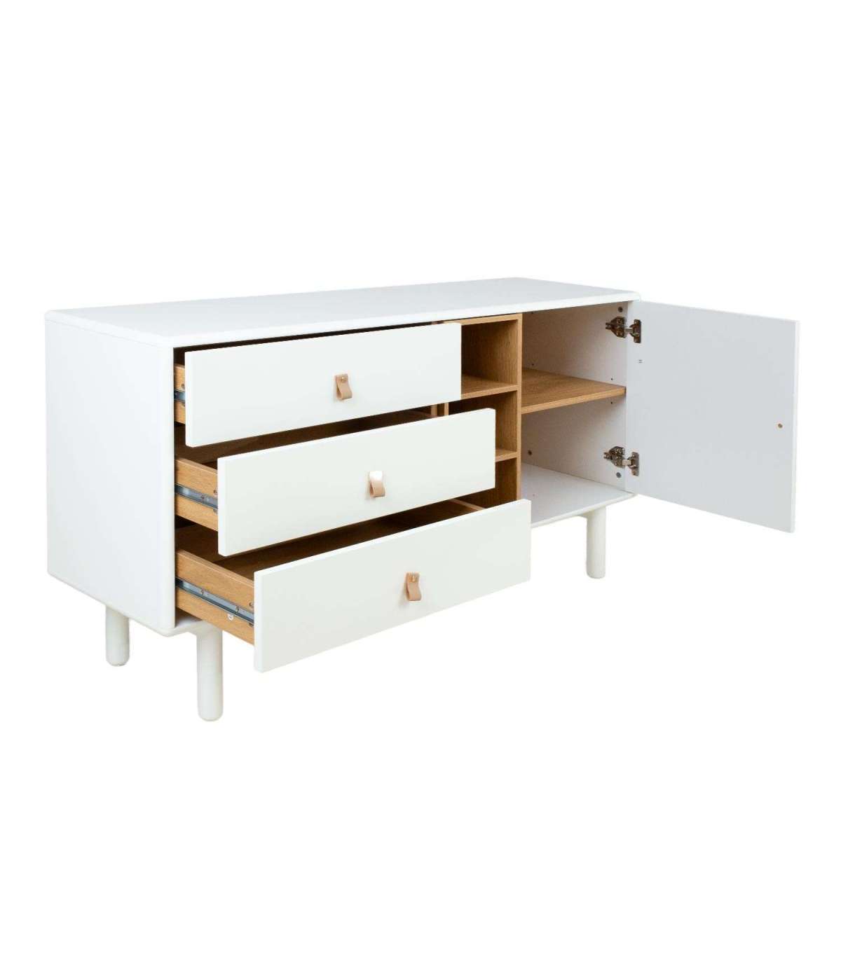 Kummut IRIS 3-sahtli ja uksega 140x40xH75cm, valge.