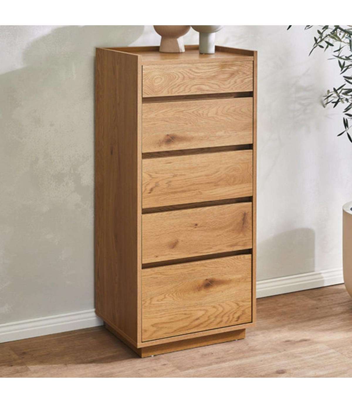 Kummut SACHA 5-sahtliga 50x40xH109cm, tammedekooriga melamiin.