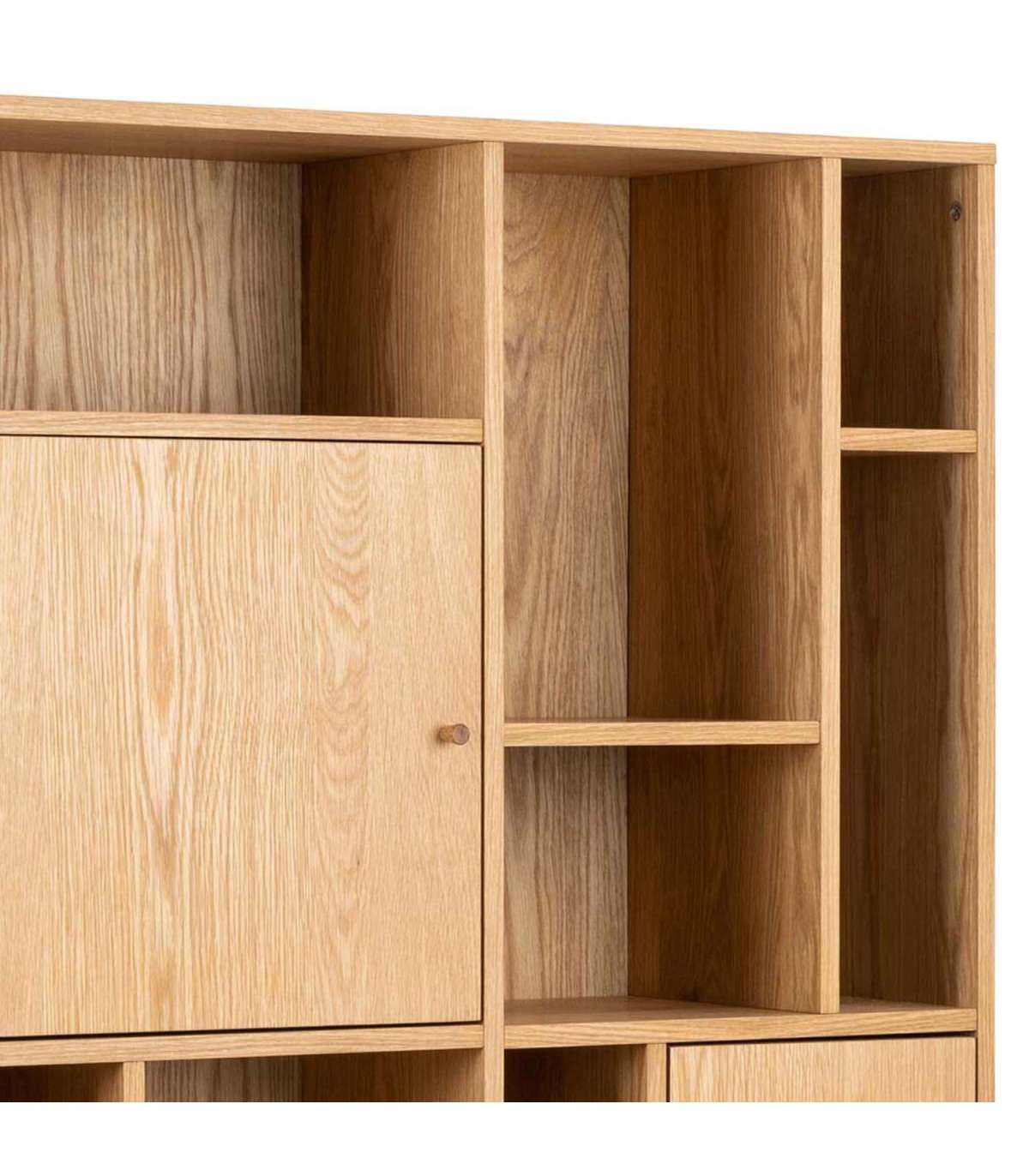 Riiul loob eluruumi sooja atmosfääri. Asümmeetrilises stiilis avatud ja suletud panipaigad. Valmistatud õliga töödeldud tammespoonist. Mõõdud on 90x30xH180cm. HOOLDUS: Kõik plekid tuleb koheselt eemaldada niiske lapiga. Kasutage seebiveest kuivaks väänatud lappi.
