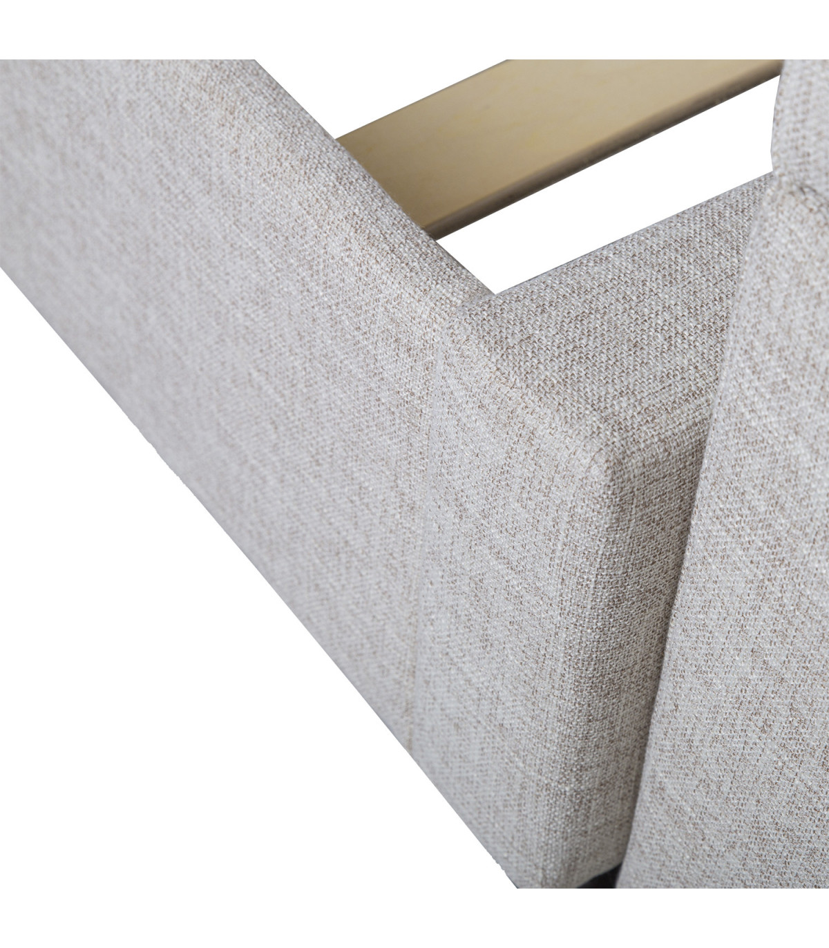 Voodi korpus on valmistatud MDF plaadist ja kaetud beeži polüesterkangaga.
