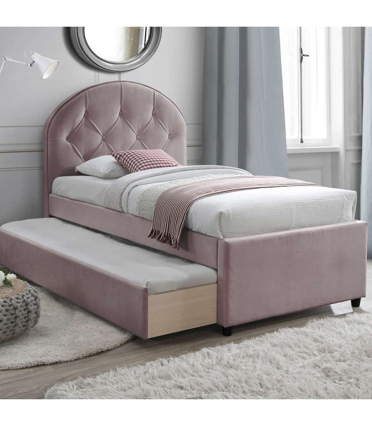 Voodi LARA 90x205cm, ilma madratsita, lillakasroosa