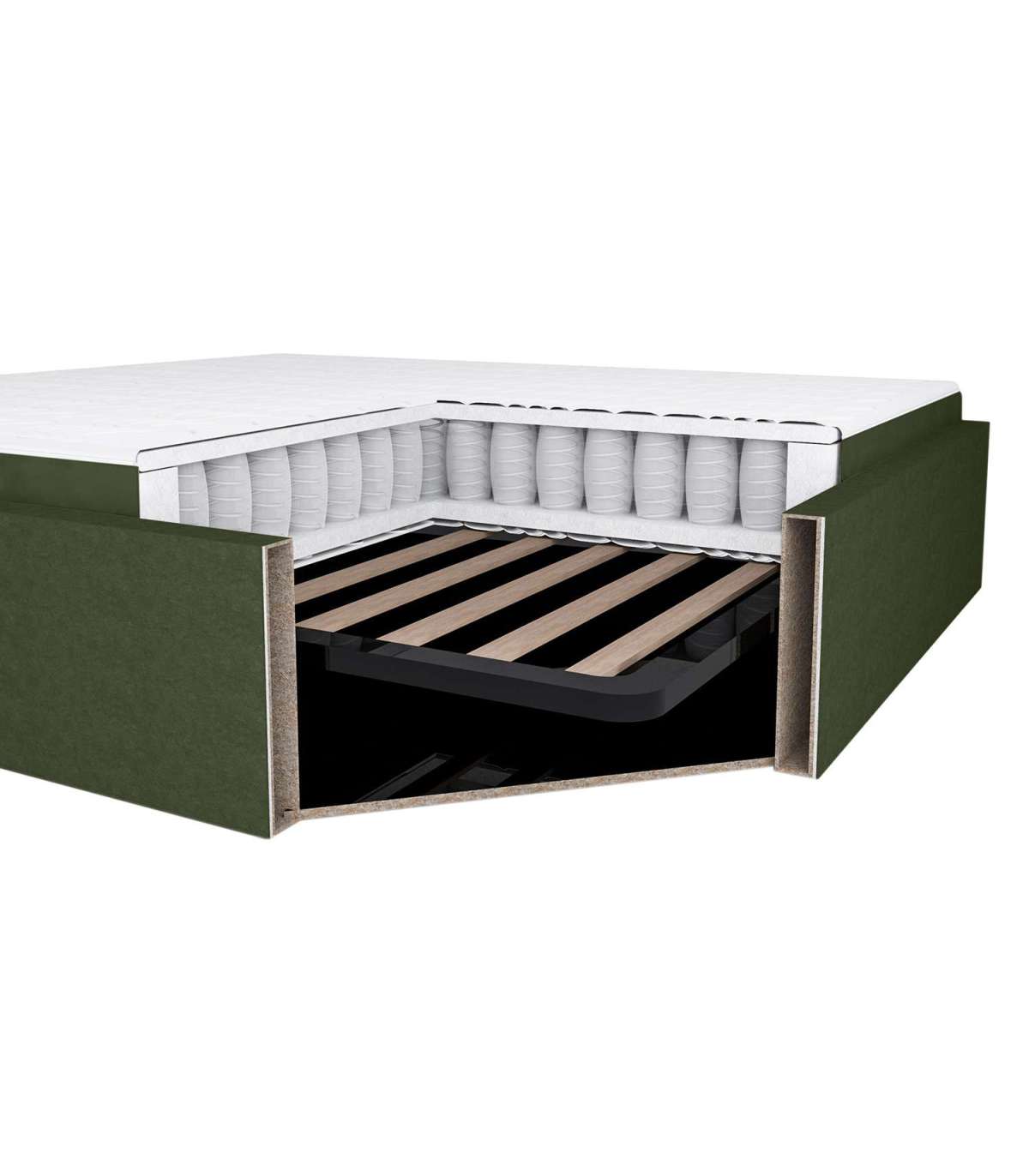 Kontinentaalvoodi LEENA 160x200cm, madratsiga, roheline, 176x221xH110cm