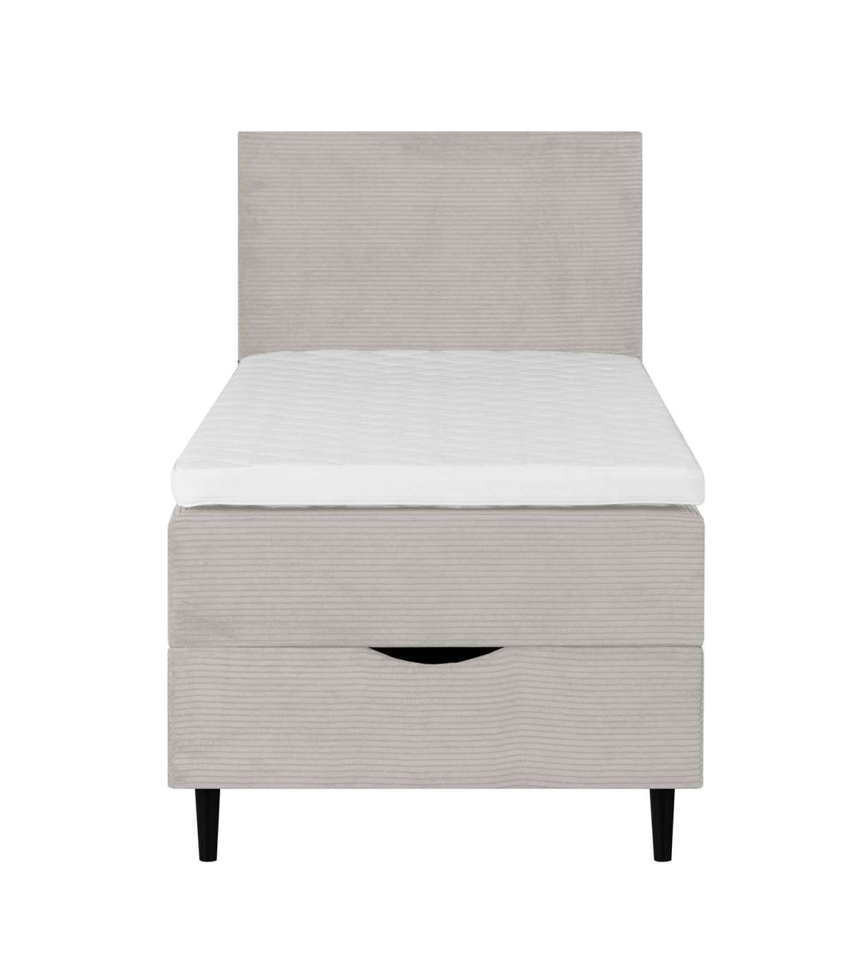 Voodi kattemadrats on poroloonist ja selle paksus on 7cm. Kattemadratsi all asub pocket-vedrustusega madrats. 210vedru/m2, vedru kõrgus 13cm. Madratsi jäikus: keskmine. Voodi raam on valmistatud puidust, puitlaast- ja puitkiudplaadist. Voodi all asub ruumikas panipaik. Voodijalad on valmistatud puidust, 14cm kõrged. Voodipeats on voodiga sama lai, selle paksus on 7cm, kõrgus 105cm. Ühenduselemendid on lisatud. Voodi kõrgus maast on 70cm. Toote mõõdud on 91x208xH119cm.