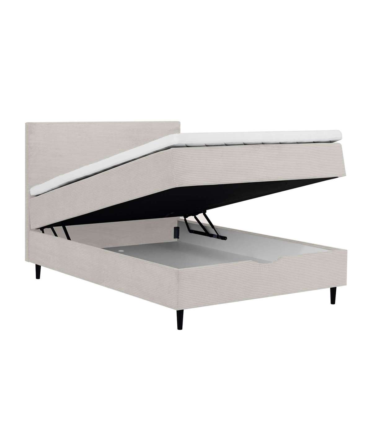 Voodi kattemadrats on poroloonist ja selle paksus on 7cm. Kattemadratsi all asub pocket-vedrustusega madrats. 210vedru/m2, vedru kõrgus 13cm. Madratsi jäikus: keskmine. Voodi raam on valmistatud puidust, puitlaast- ja puitkiudplaadist. Voodi all asub ruumikas panipaik. Voodijalad on valmistatud puidust, 14cm kõrged. Voodipeats on voodiga sama lai, selle paksus on 7cm, kõrgus 105cm. Ühenduselemendid on lisatud. Voodi kõrgus maast on 70cm. Toote mõõdud on 141x208xH119cm.