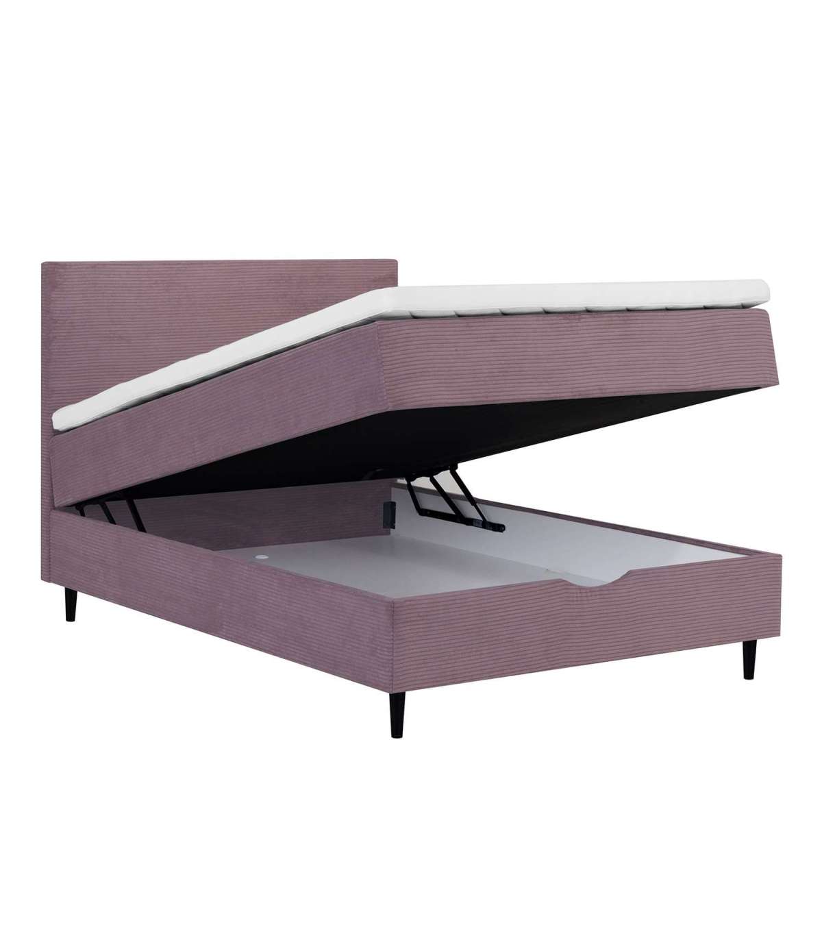 Voodi kattemadrats on poroloonist ja selle paksus on 7cm. Kattemadratsi all asub pocket-vedrustusega madrats. 210vedru/m2, vedru kõrgus 13cm. Madratsi jäikus: keskmine. Voodi raam on valmistatud puidust, puitlaast- ja puitkiudplaadist. Voodi all asub ruumikas panipaik. Voodijalad on valmistatud puidust, 14cm kõrged. Voodipeats on voodiga sama lai, selle paksus on 7cm, kõrgus 105cm. Ühenduselemendid on lisatud. Voodi kõrgus maast on 70cm. Toote mõõdud on 141x208xH119cm.