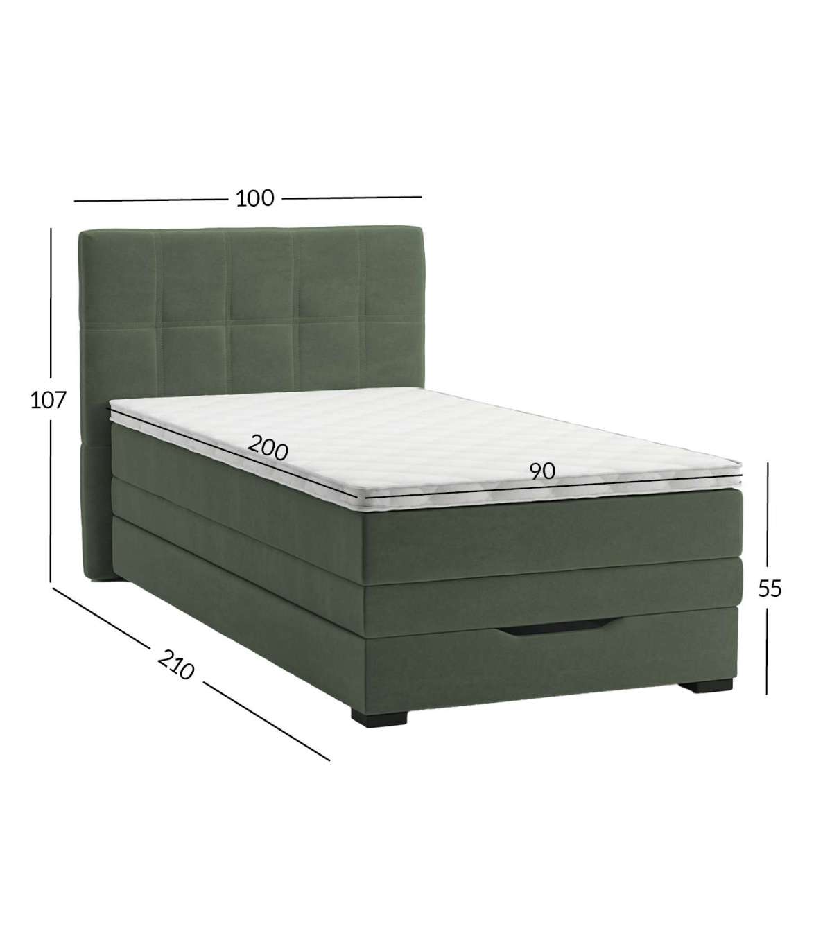 Voodi üldmõõdud on 100x210xH55/107cm.