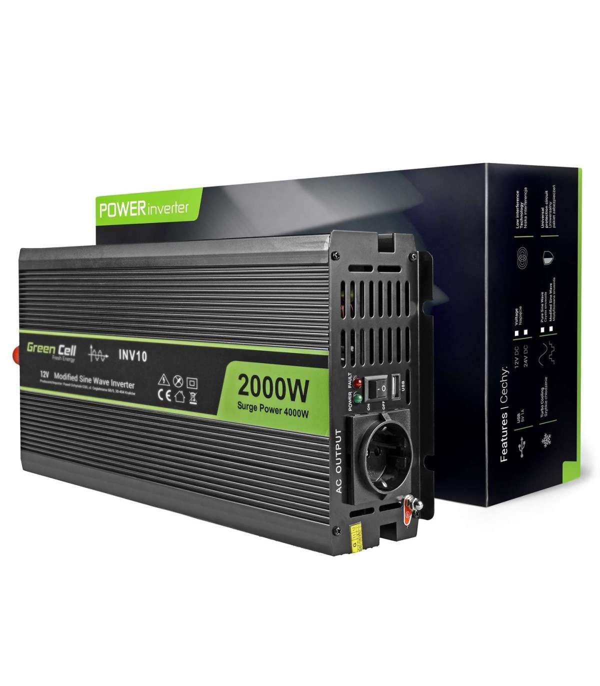 Green Cell INV10 power adapter/inverter Auto 2000 W Black