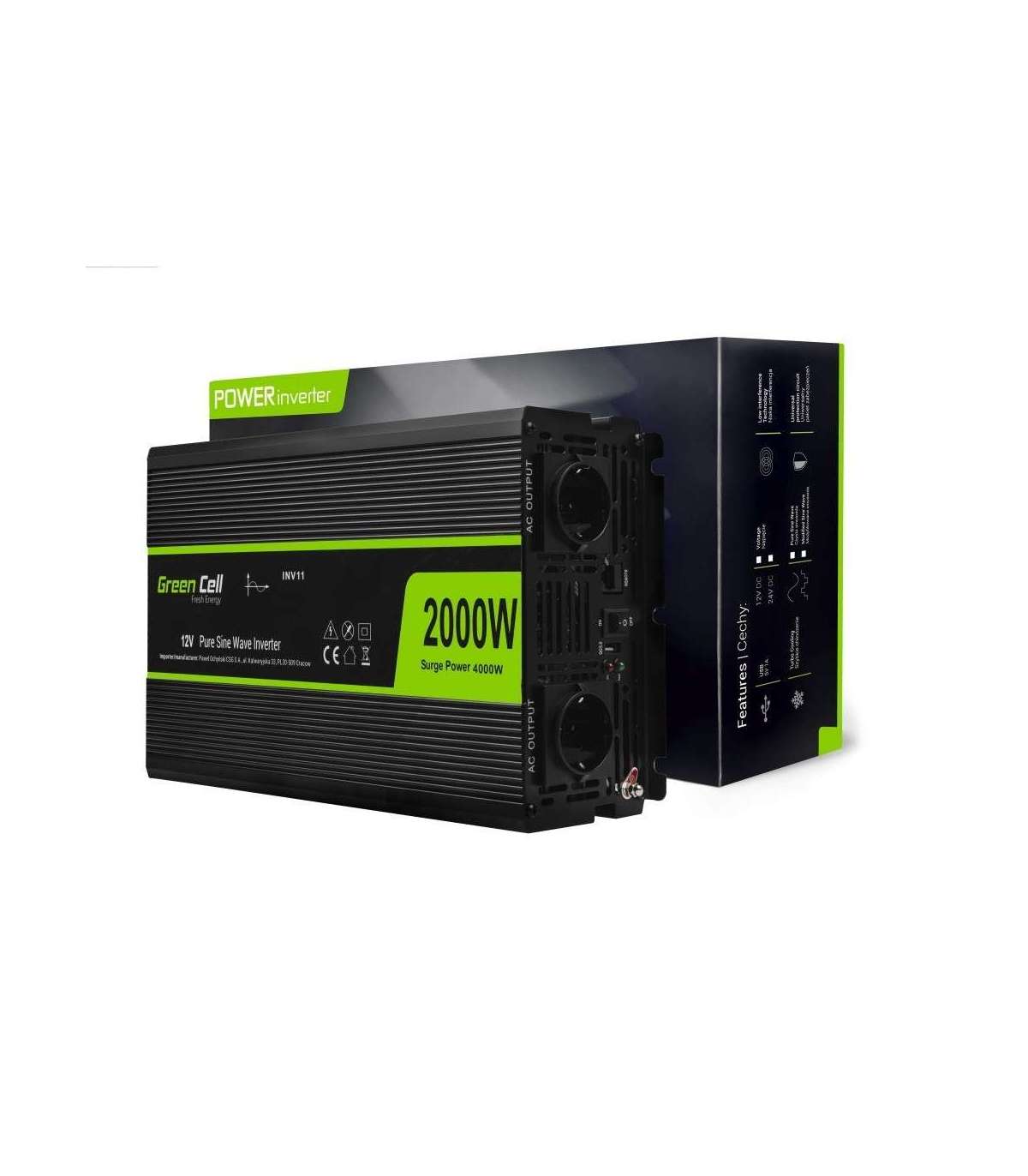 Green Cell INV11 power adapter/inverter Auto 2000 W Black