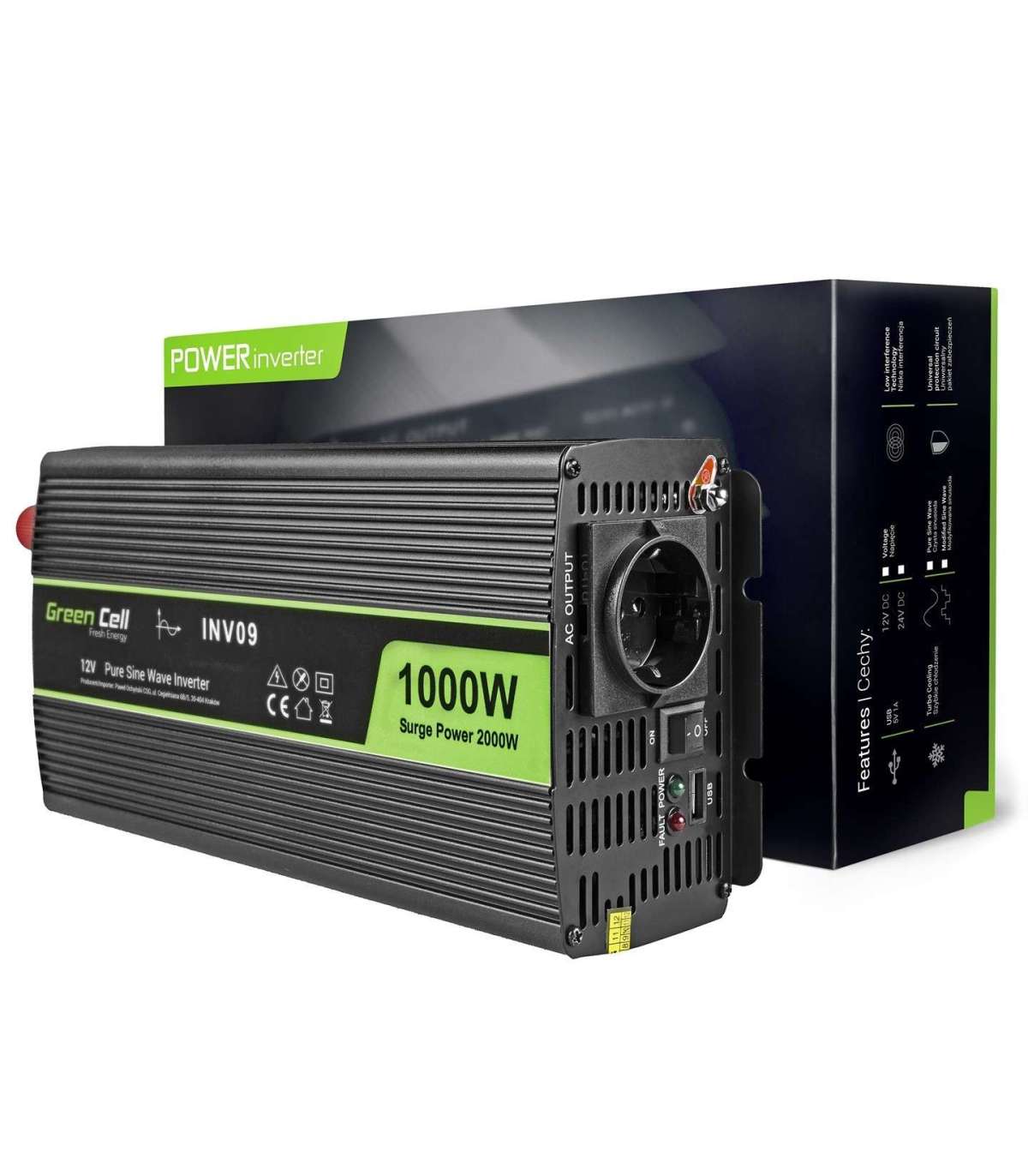 Green Cell INV09 power adapter/inverter Auto 1000 W Black