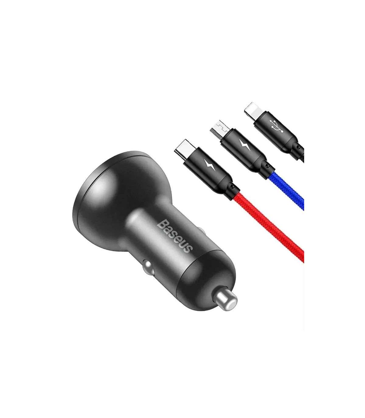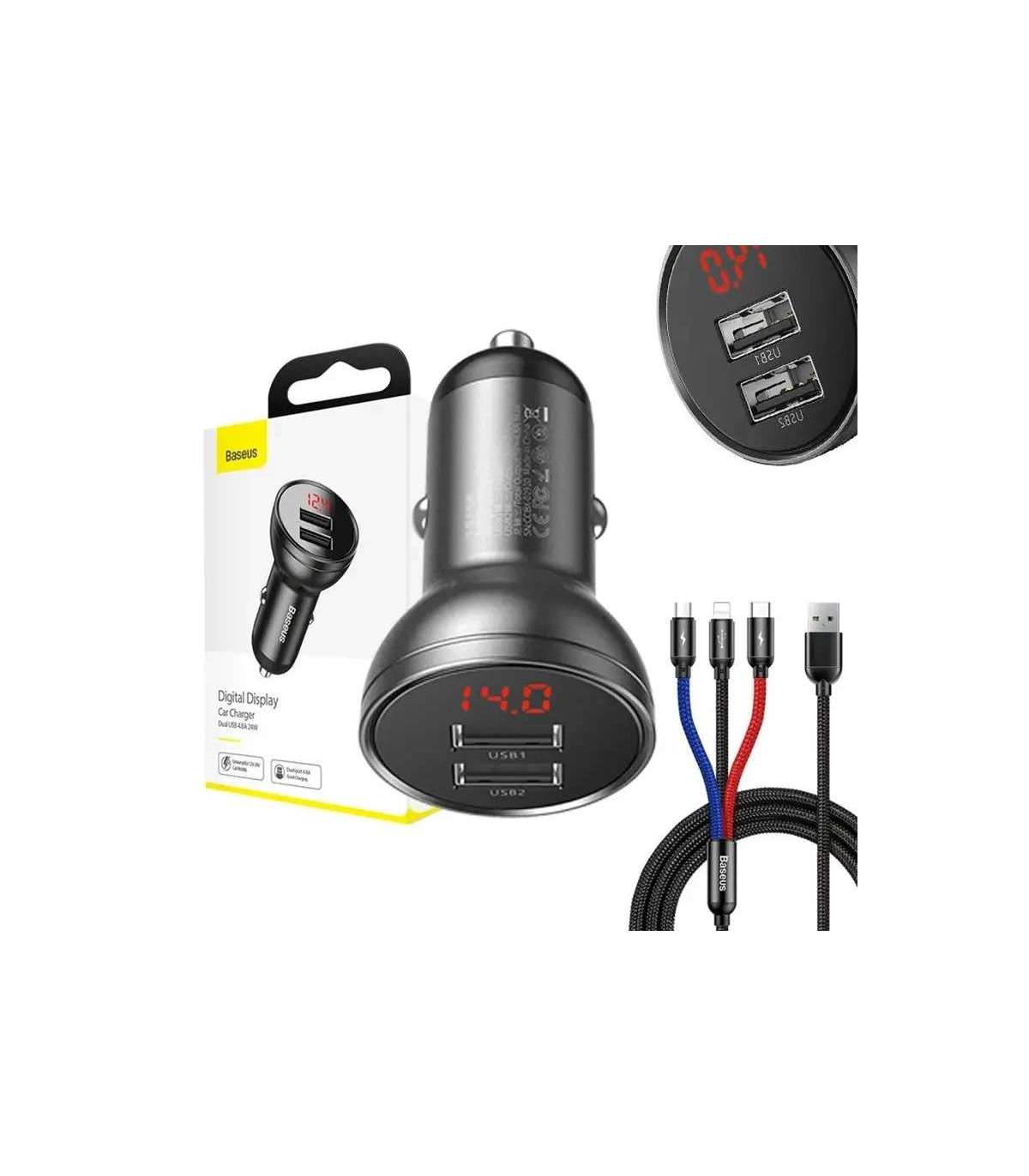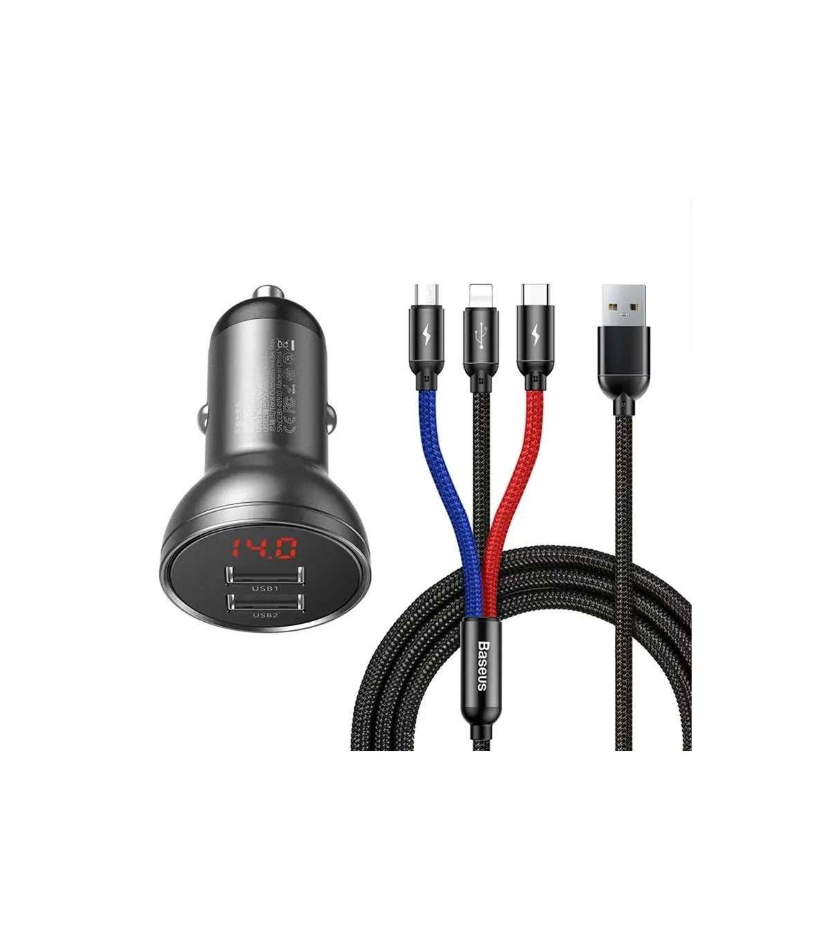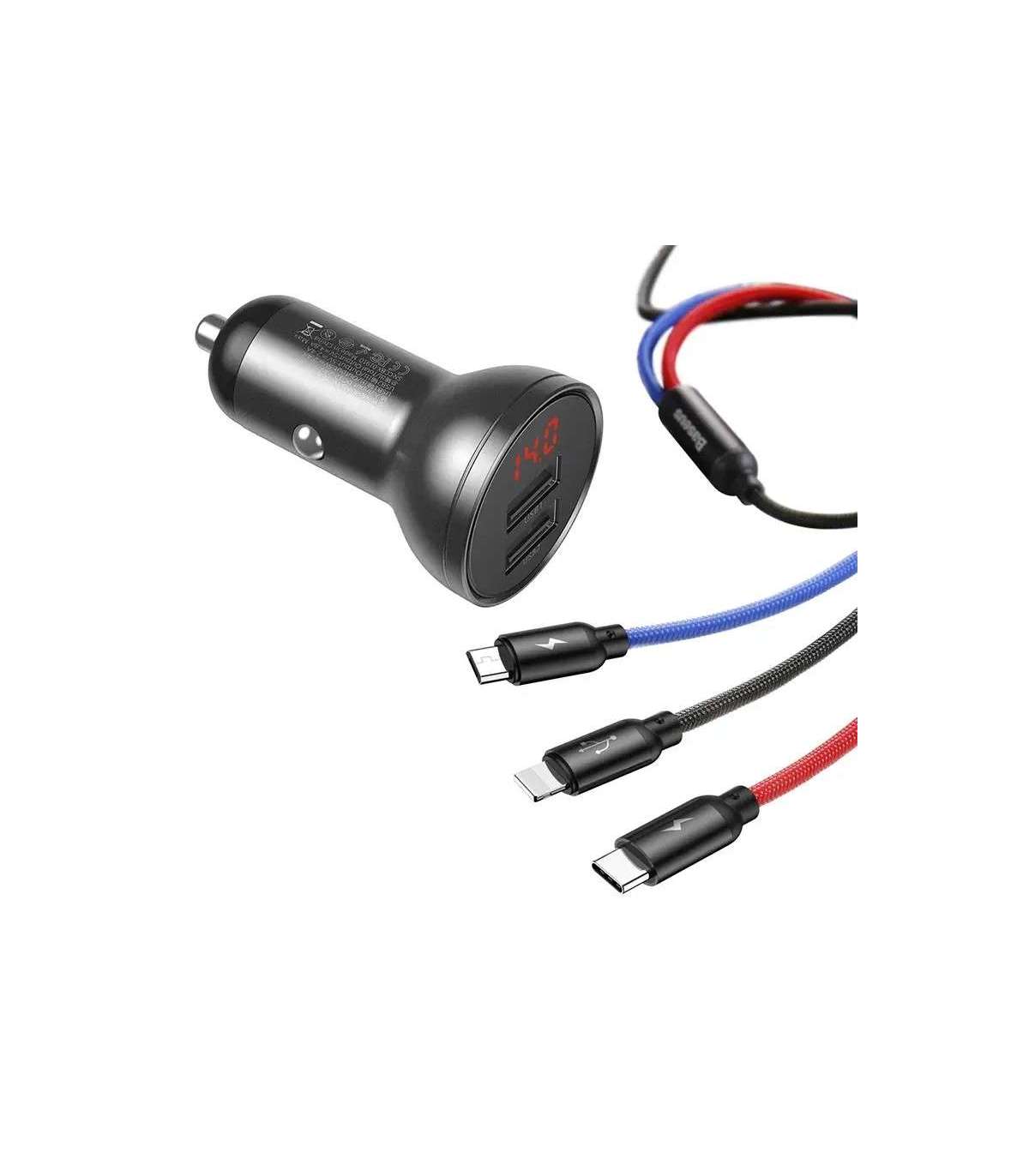 Baseus Car Charger with display 24W + Cable USB 3in1 Baseus Three Primary Colors 1,2m