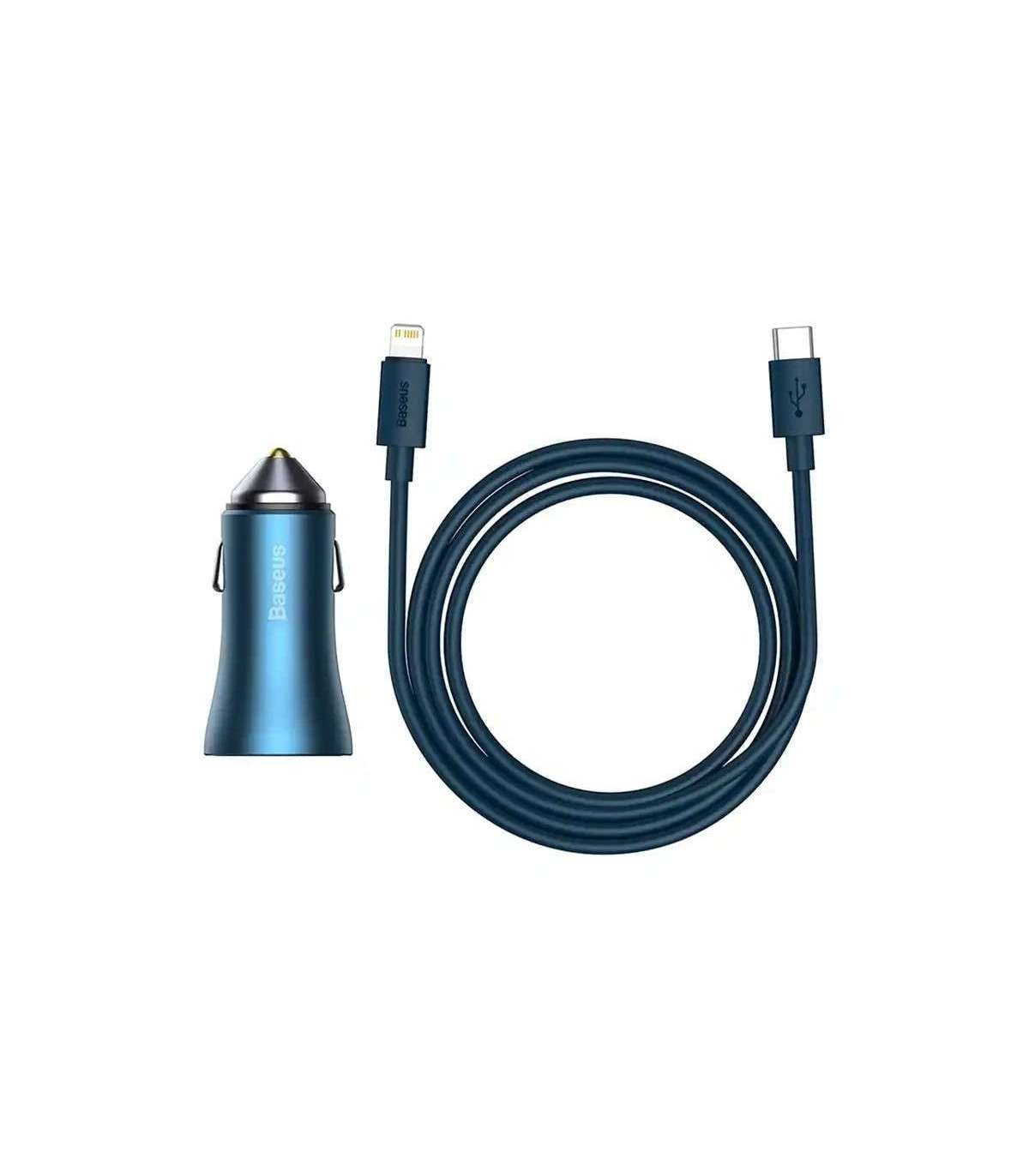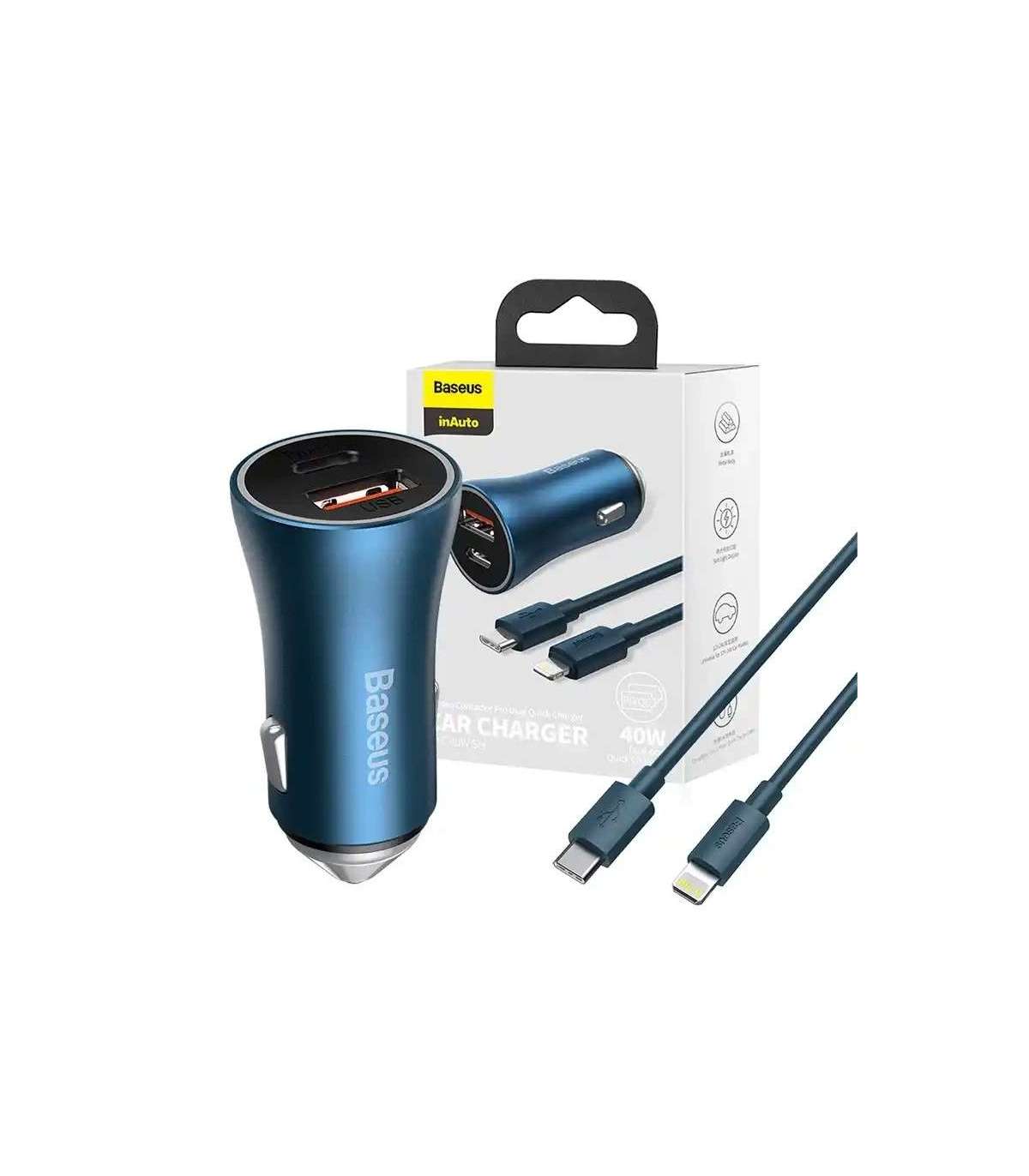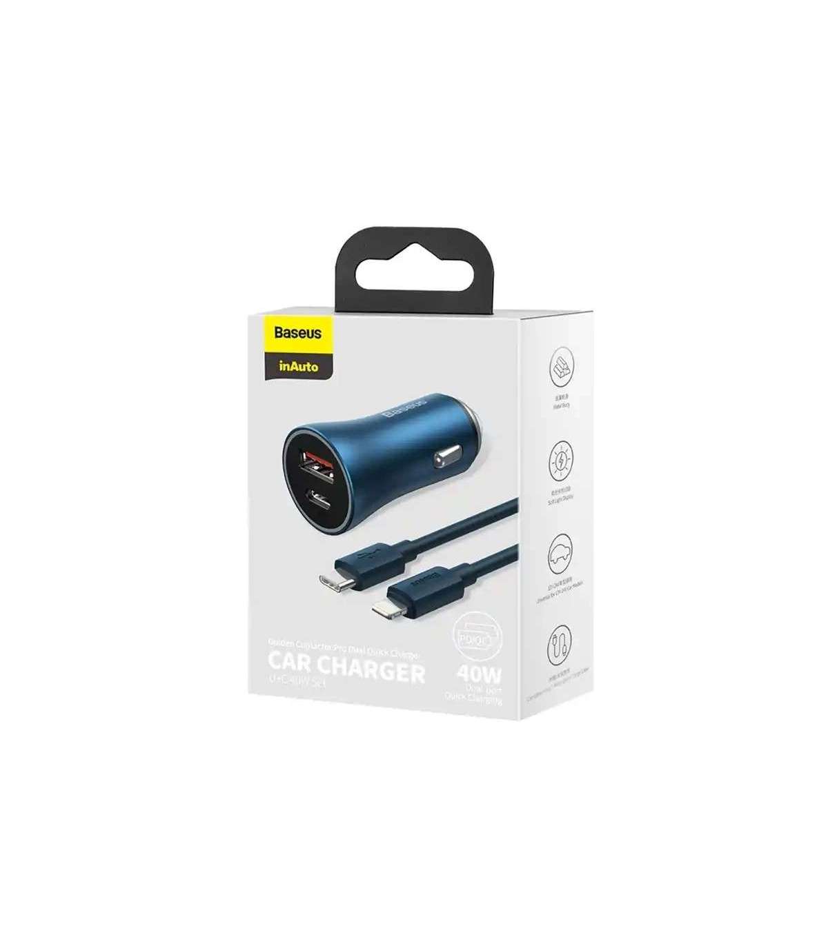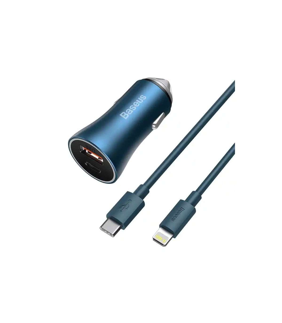 Baseus Golden Contactor Pro car charger, USB + USB-C, QC4.0+, PD, SCP, 40W (blue) + USB-C - Lightning cable 1m (blue)