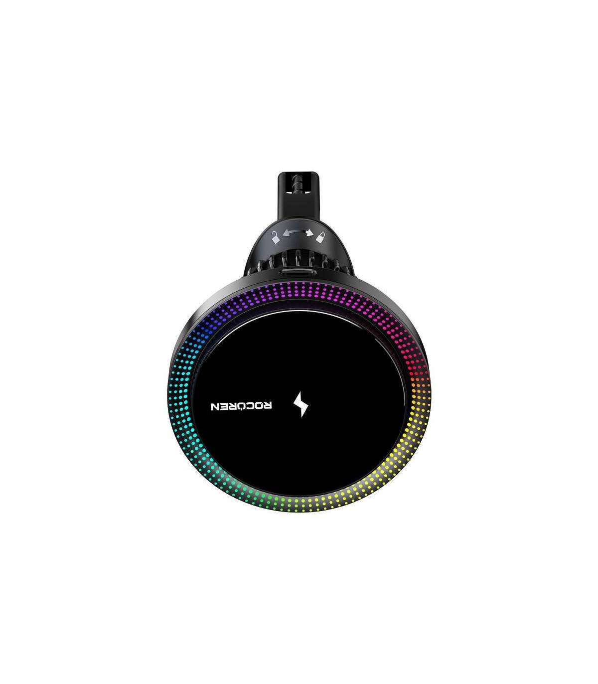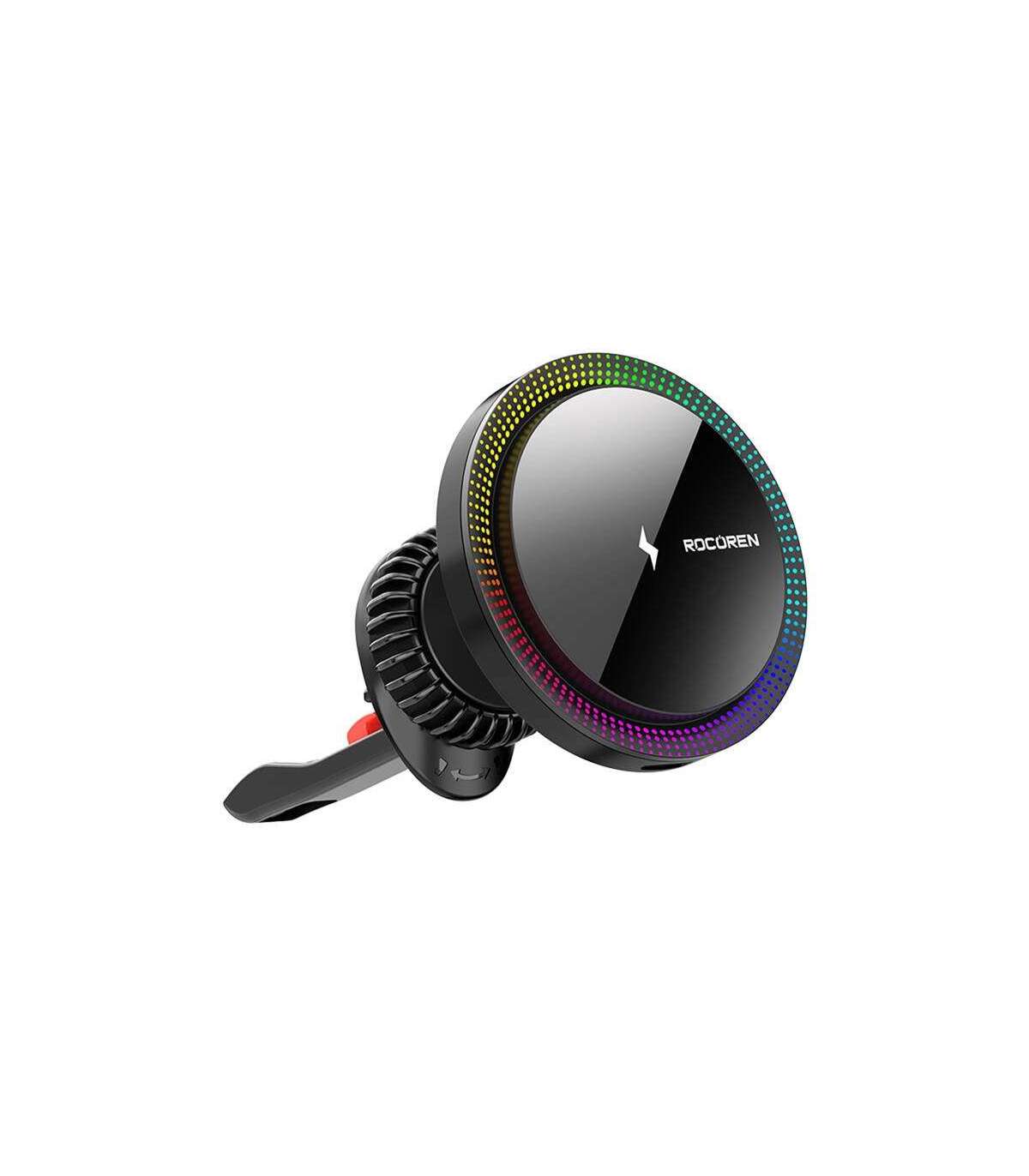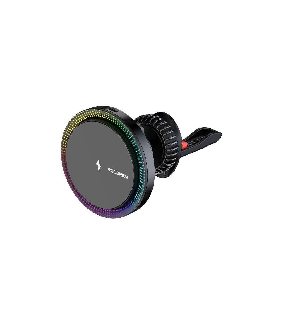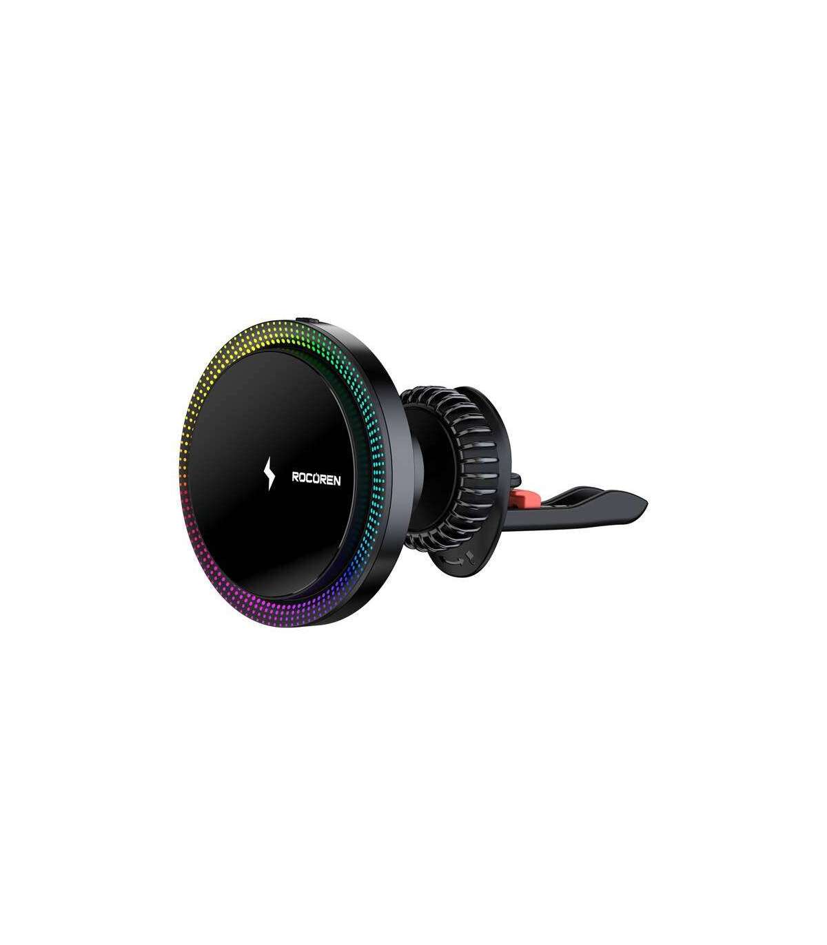 The Rocoren RCZJ-XK01 wireless car charger is the perfect solution for anyone who values comfort while traveling. Designed with user convenience in mind, it offers fast and safe charging without the need for cables. Mounting on the air vents makes it always within easy reach, and the black design combined with colorful backlighting blends in perfectly with the interior design of any car.