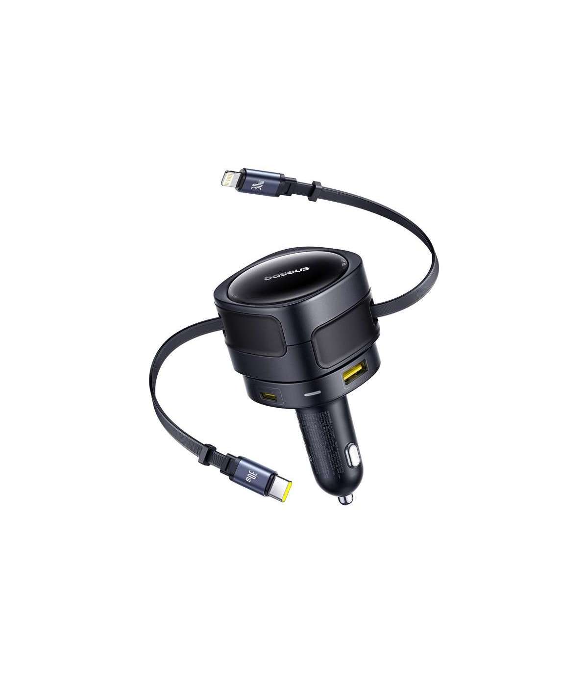 The 180° mechanism used allows you to conveniently position the charger at any angle without tangled wires. Dual 80 cm long cables automatically retract for easy organization of space in the car.