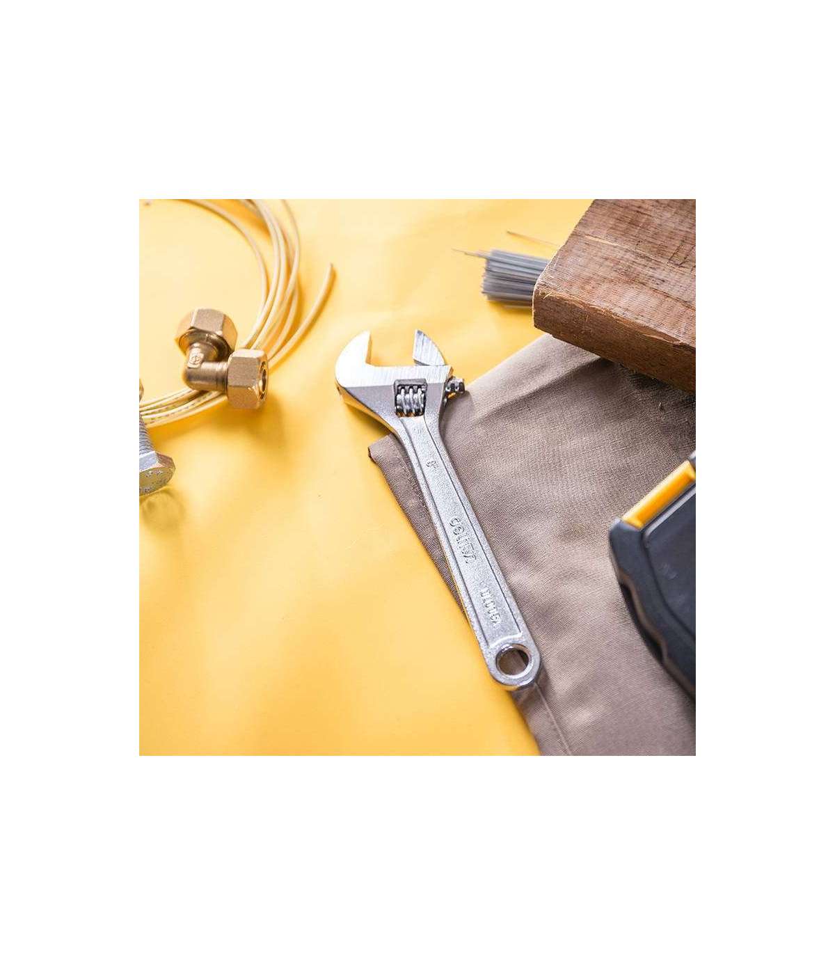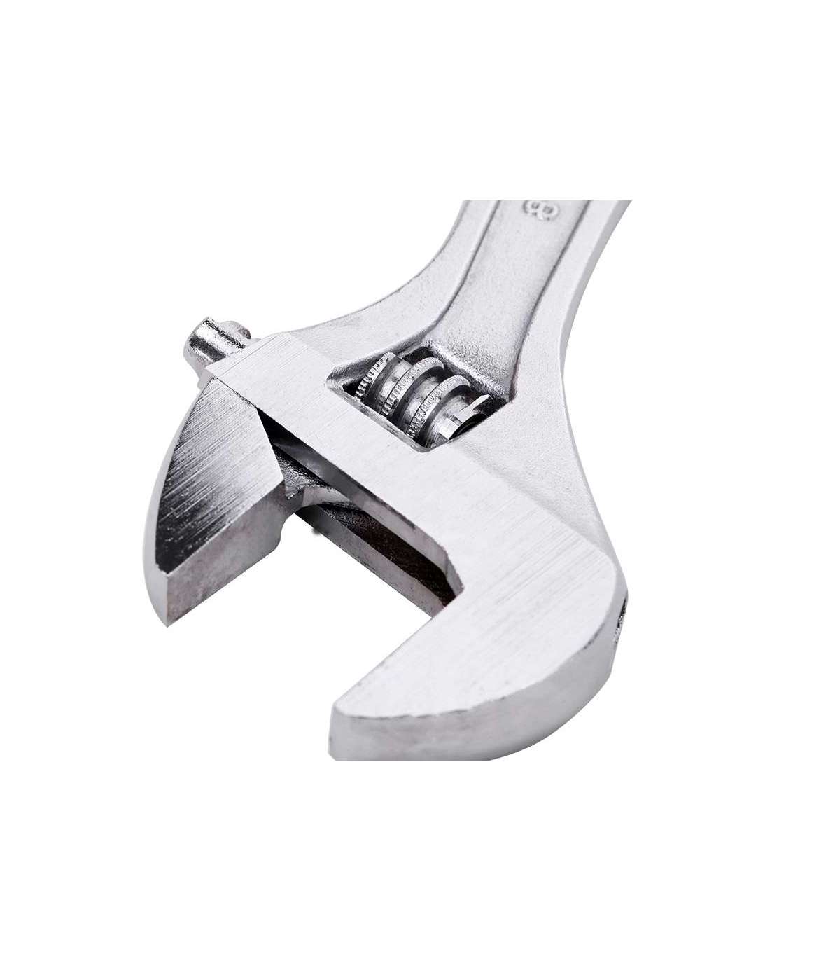 The adjustable spanner allows one tool to work on a wide range of screw sizes. It is made of forged special high quality steel, which guarantees its durability and strength. You can easily adjust the opening of its jaws with a special knob. The screw nut opens freely, which translates into comfortable use of the tool. The hole in the upper part of the handle allows you to hang the product in the workshop and keep it in order. The laser-engraved scale makes it easy to read and the chrome-plated surface not only looks very elegant but also protects the wrench from rust. Similar tools are ideal for all assembly and plumbing jobs.