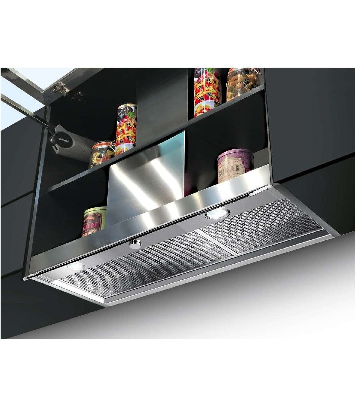 The In-Nova Comfort is part of the In-Nova range of Faber built-in cooker hoods. The In-Nova Comfort features industrial style central panels, LED lights and a glass panel that can be positioned to direct cooking steam and odours towards the hood.