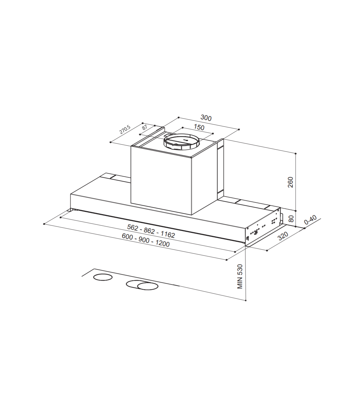 The In-Nova Comfort has a control knob that pulls out to activate the hood and can be adjusted to be used on recirculating mode with the addition of a charcoal filter.