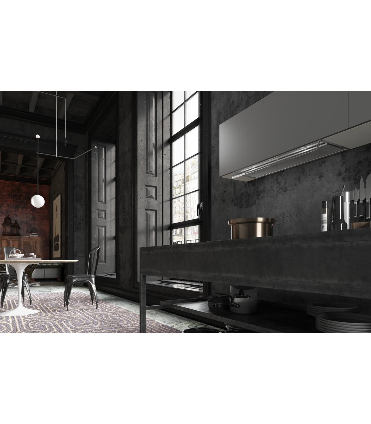 The In-Nova Premium is part of the In-Nova range of Faber built-in cooker hoods. The In-Nova Premium features industrial style central panels, LED lights and a glass panel that can be positioned to direct cooking steam and odours towards the hood.