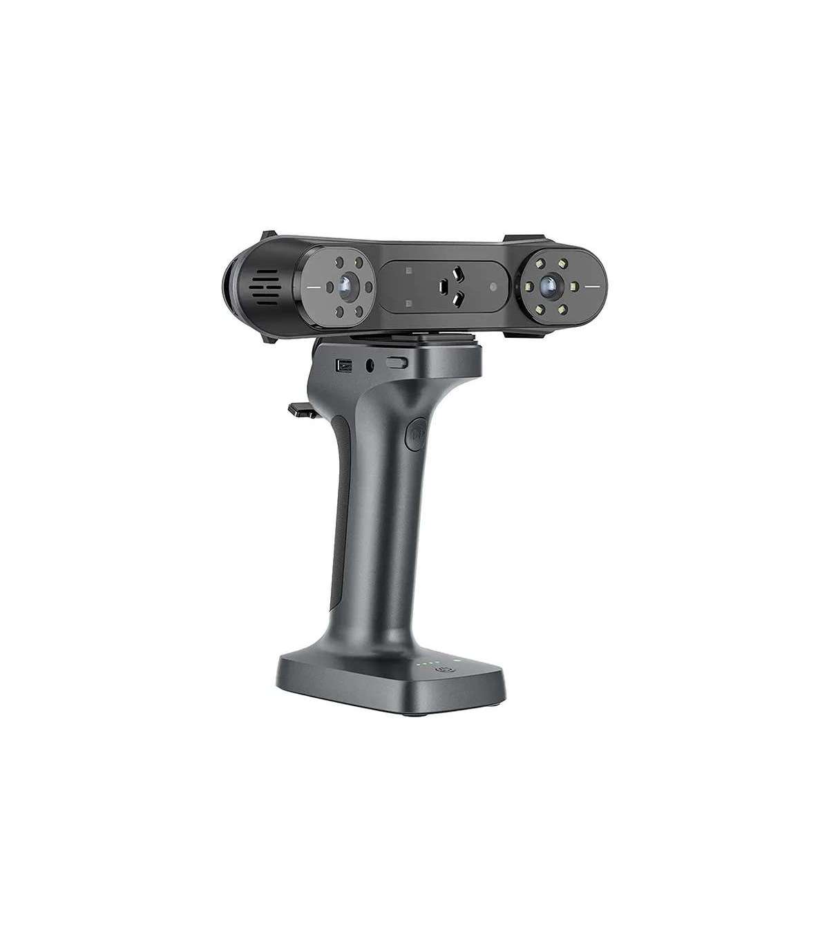 The RaptorX achieves an accuracy of 0.02 mm + 0.06 mm/m and a resolution of up to 60 fps, allowing it to capture even the smallest detail. Its full-color scanning capability makes it ideal for projects requiring surface analysis. The device handles objects ranging in size from 5 mm³ to 4 m³, making it a versatile tool for scanning small parts, silhouettes or large mechanical parts.