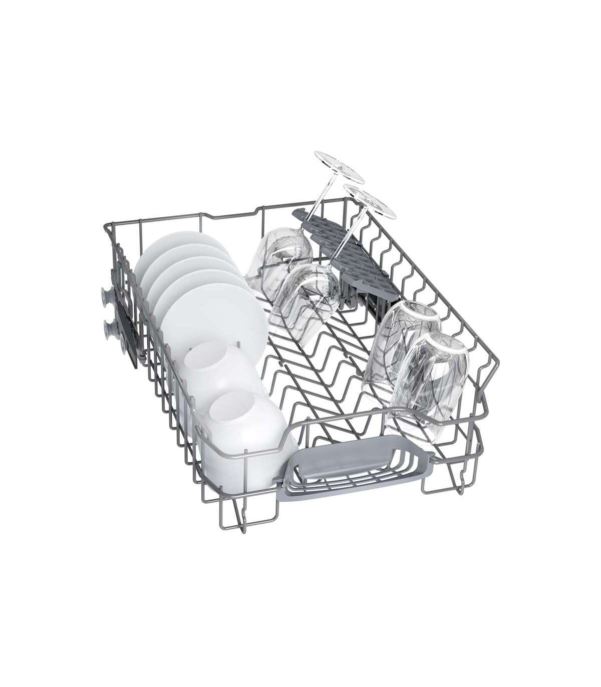 Nõudepesumasinat täites tuleb ikka ette, et kõrgete nõude, pokaalide jms jaoks oleks üleval pool veidi rohkem ruumi vaja. Siin tuleb appi Rackmatic. Reguleeri nõudepesumasina ülemist riiulit kolme eri kõrguse vahel. Nüüd saad paigutada kohmaka kujuga ja kõrged nõud täpselt sinna kuhu soovid. Tänu kolmekordsele Rackmatic-süsteemile saab ülemise korvi kõrgust hõlpsasti kuni 5 cm reguleerida ja seda isegi juhul, kui masin on täis. See tähendab veelgi rohkem reguleerimisvõimalusi ja suuremat paindlikkust.