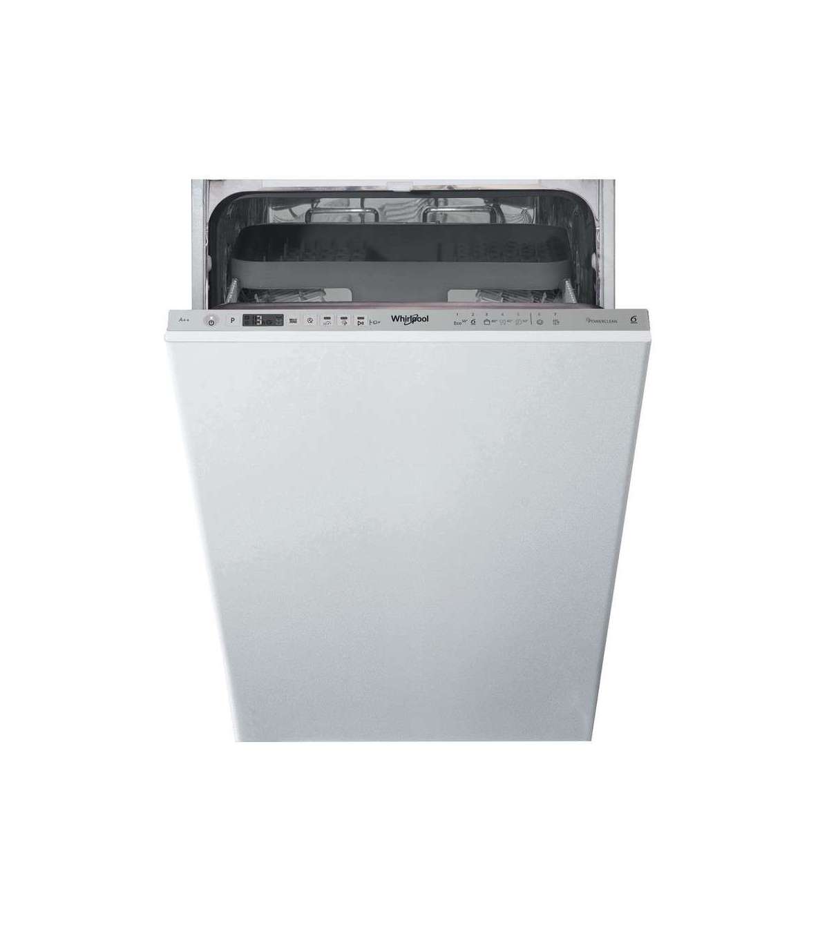 Whirlpool Dishwasher | WSIO 3T223 PCE X | Built-in | Width 45 cm | Number of place settings 10 | Number of programs 7 | Energy efficiency class E | Display | Inox