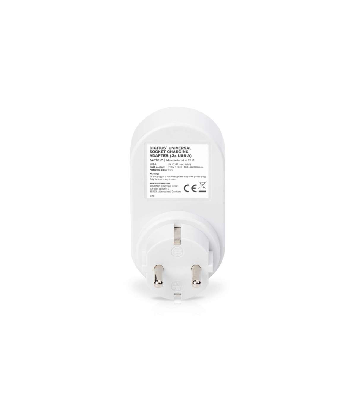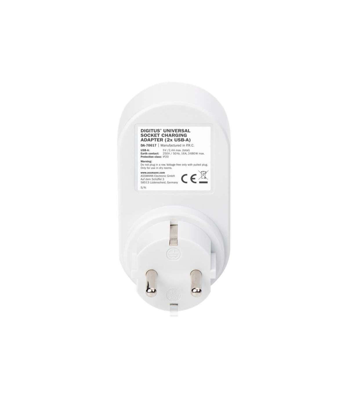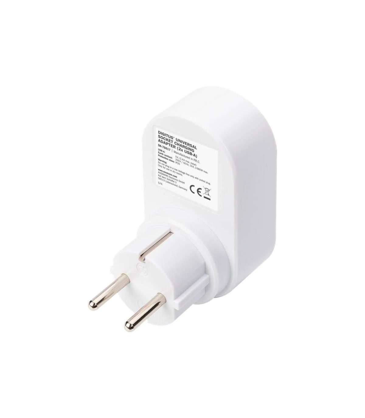 Digitus Universal USB Plug-in Charger with 2 x USB-A Sockets and Integrated Socket | DA-70617