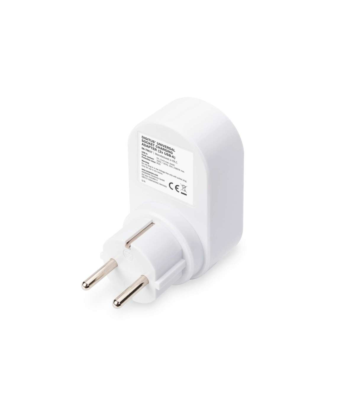 Digitus Universal USB Plug-in Charger with 2 x USB-A Sockets and Integrated Socket DA-70617