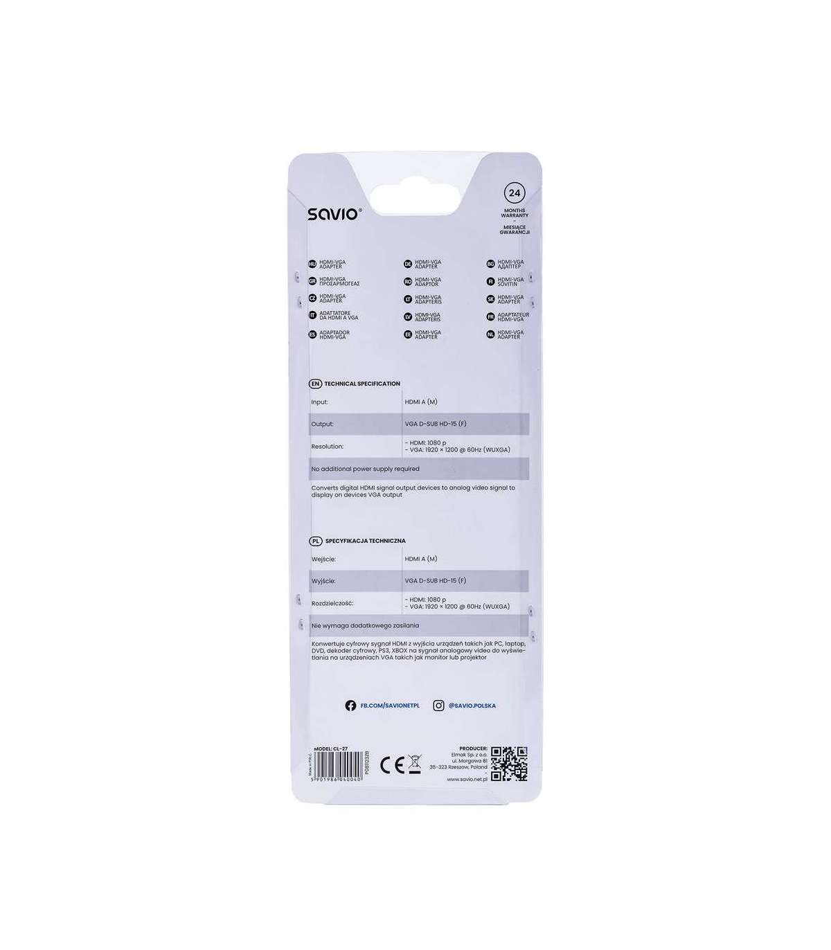 Savio CL-27 video cable adapter 0.2 m VGA (D-Sub) HDMI Type A (Standard) White