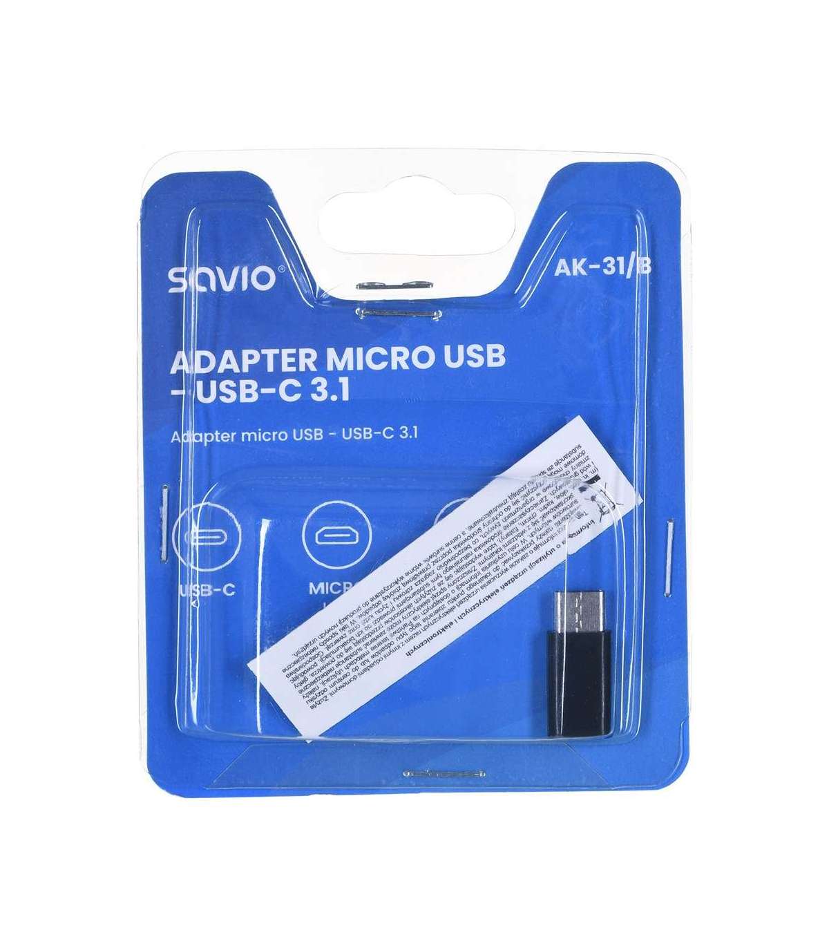 Savio AK-31 / B cable interface/gender adapter Micro USB USB 3.1 Typ C Black