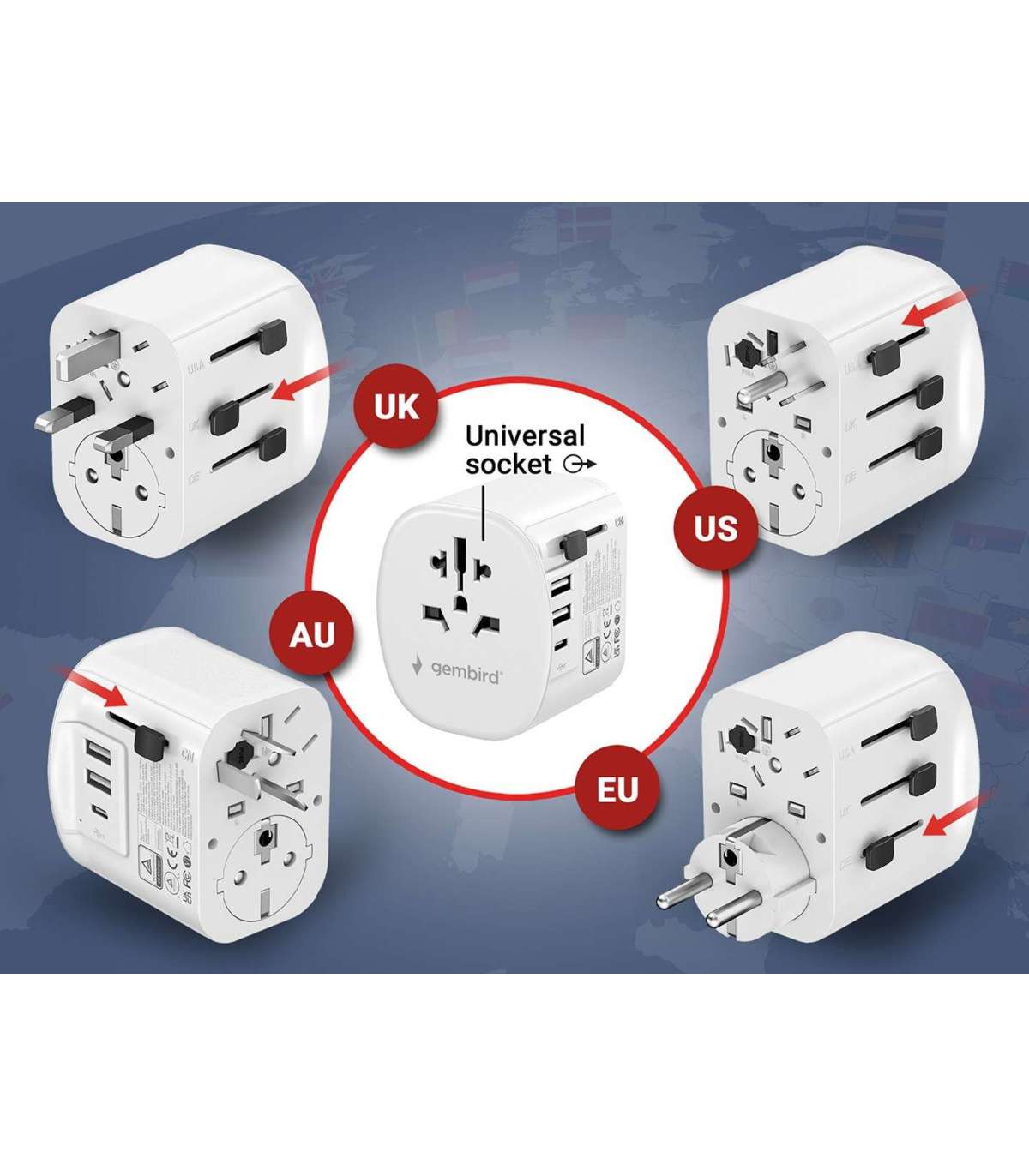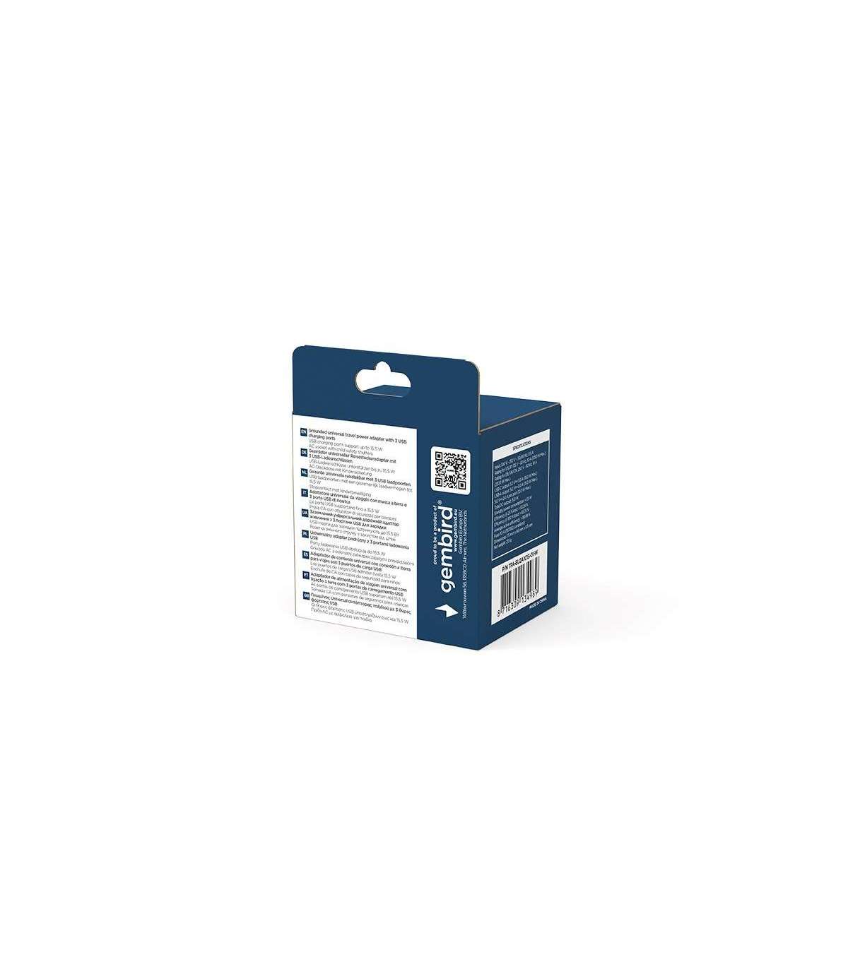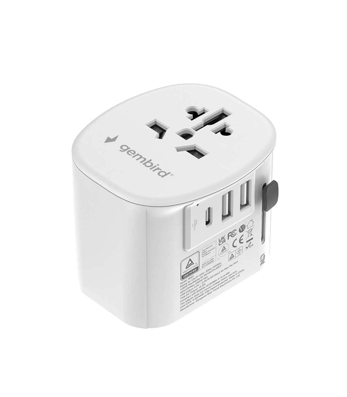 Gembird TPA-EU2A1C15-01-W Grounded universal travel power adapter, 15 W, white