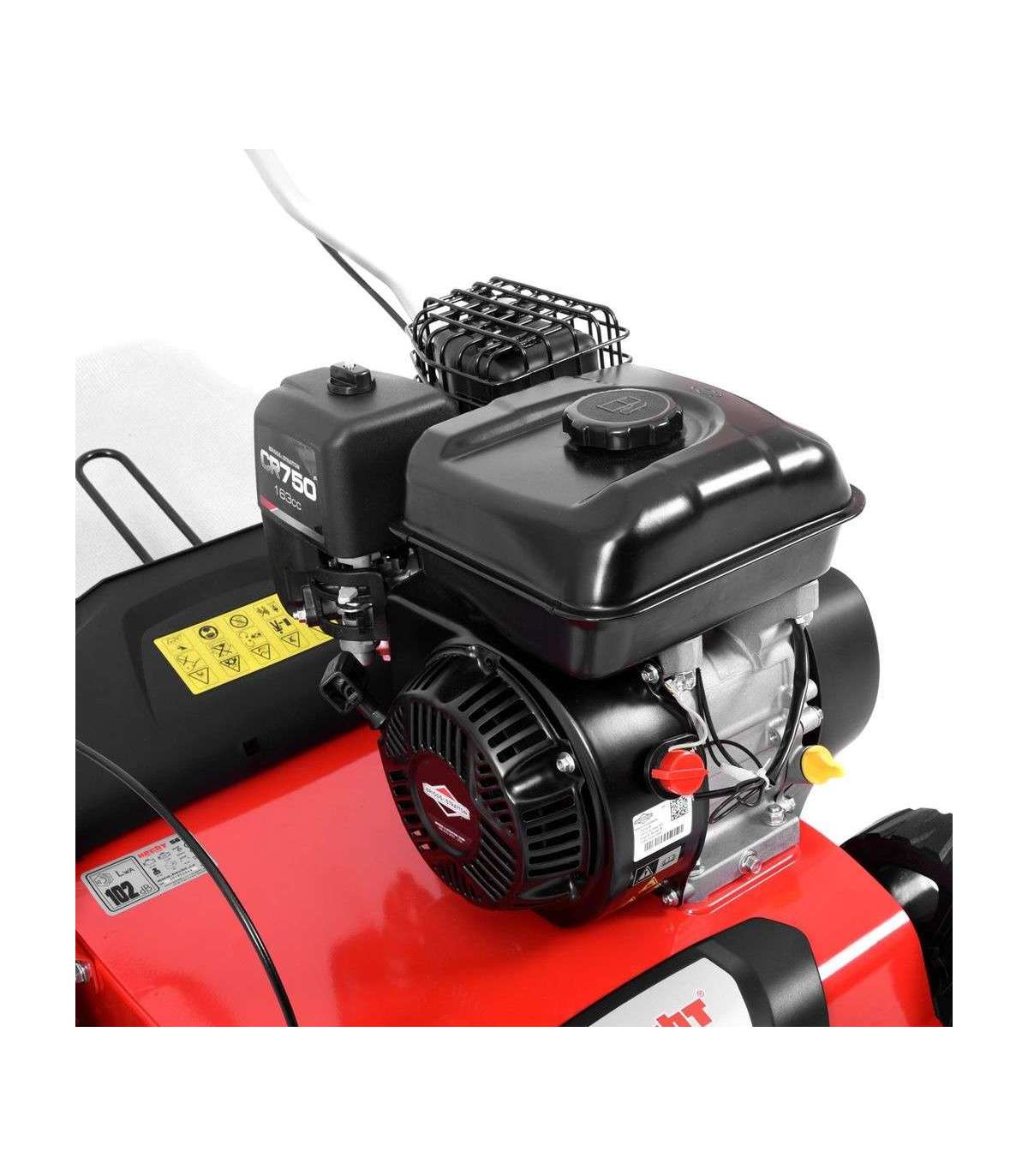 Высококачественный 4-тактный двигатель Briggs & Stratton CR 950, рабочий объем 208 см3, мощность 4,2 кВт. Рабочая ширина вала с ножами — 46 см, рабочая ширина вала с проводами — 40 см. Регулируемая глубина от -15 до +5 мм. Центральная регулировка глубины аэрации. Объем корзины 45 л. Колеса на шарикоподшипниках. Вес 37 кг. Подходит для поверхностей прибл. 1600 м2. Рычаг регулировки рабочей глубины на руле.